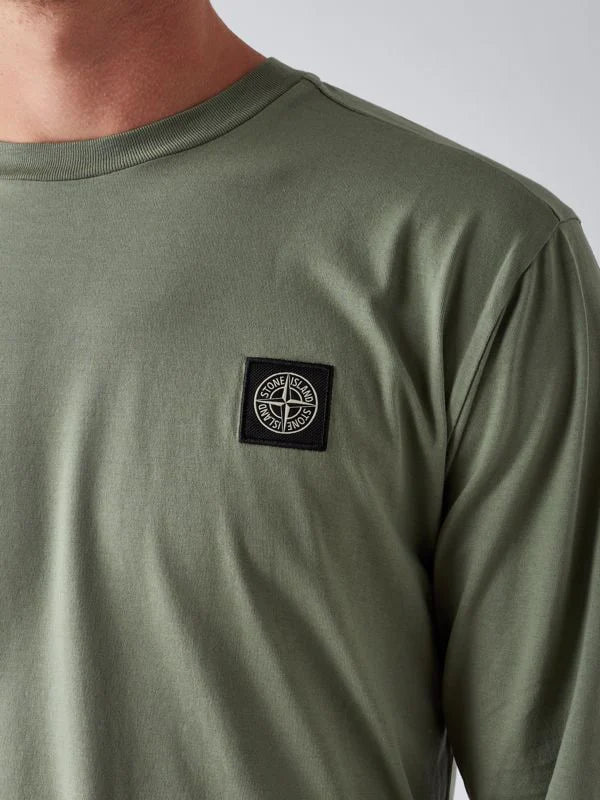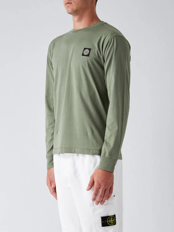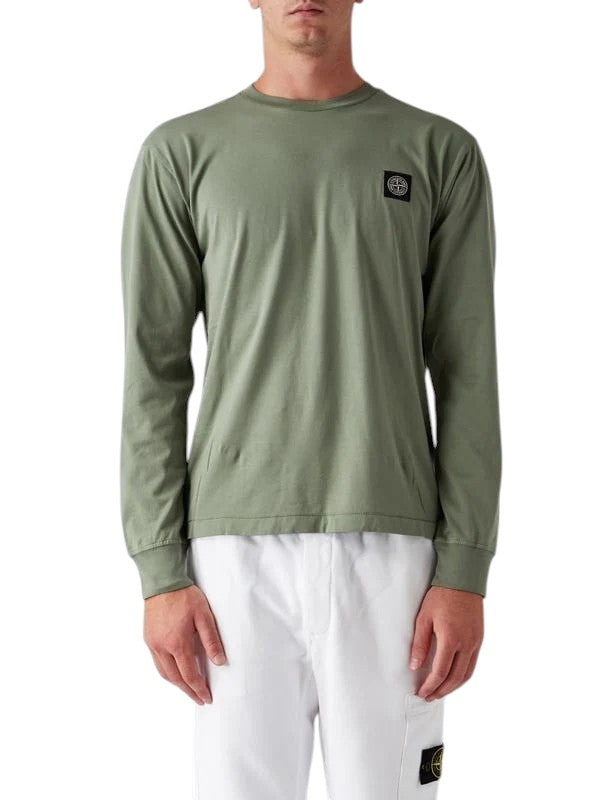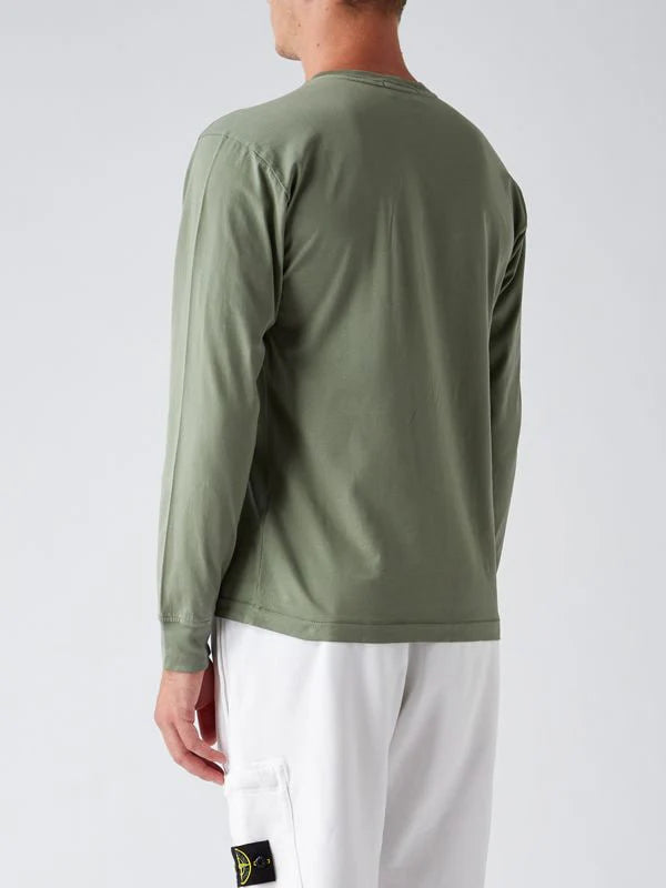 Лонгслів із бавовняного джерсі, пофарбований у готовому вигляді для надання виробу глибини та унікальності кольору. Модель виконана з м’якої натуральної тканини, має круглу еластичну горловину та прикрашена фірмовою нашивкою Stone Island з емблемою у вигляді троянди вітрів на грудях.