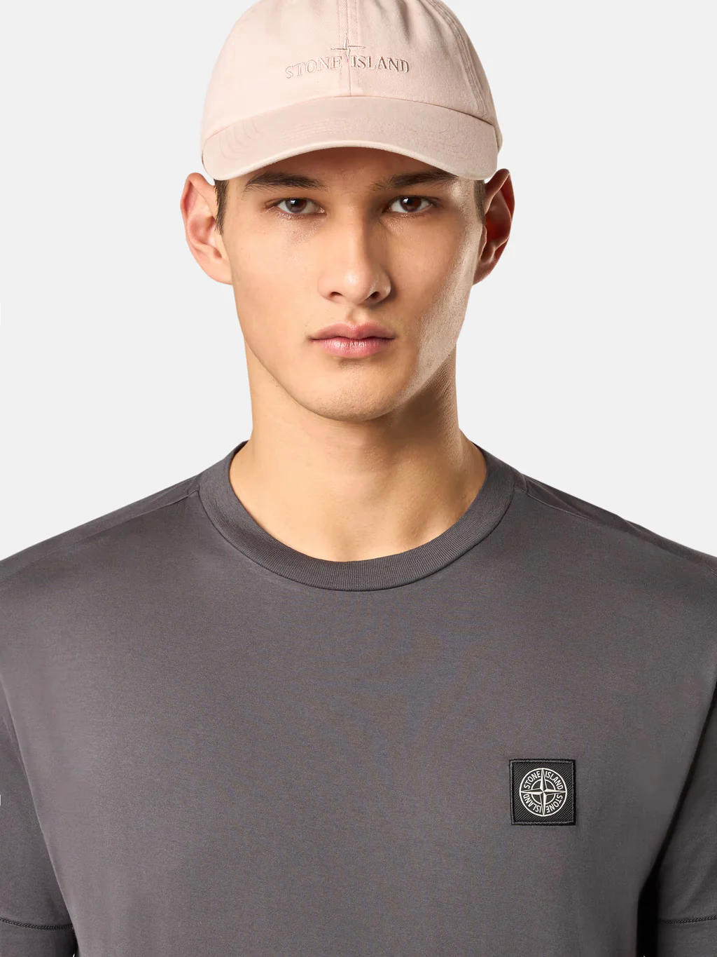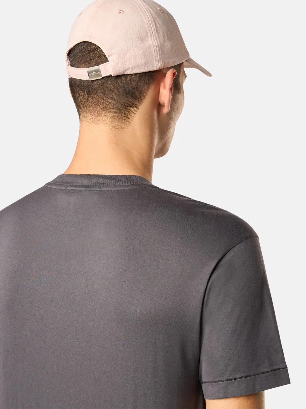 Футболка з короткими рукавами з мерсеризованого бавовняного джерсі. Виріб пофарбовано в готовому вигляді. Горловина в гумку. На грудях аплікація з емблемою Stone Island у вигляді рози вітрів. Рукава і низ оброблені вузьким кантом.