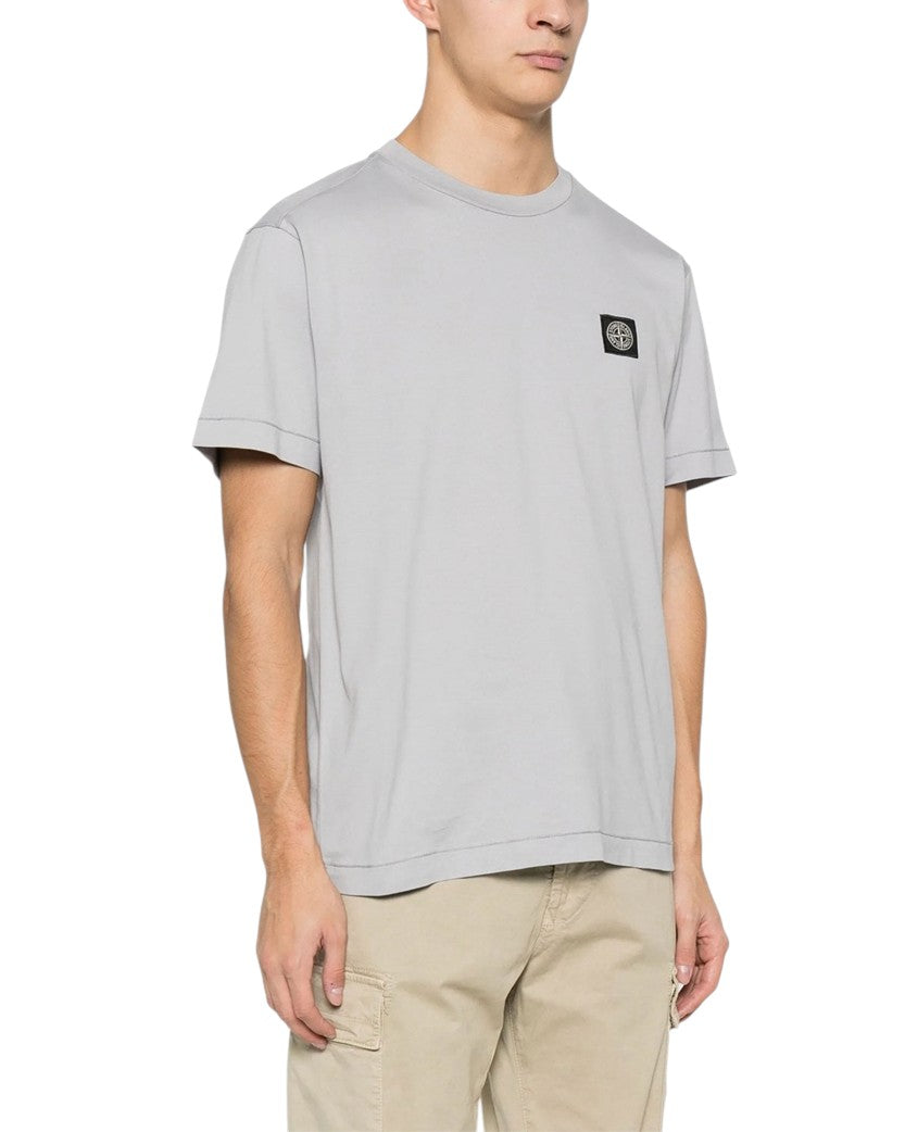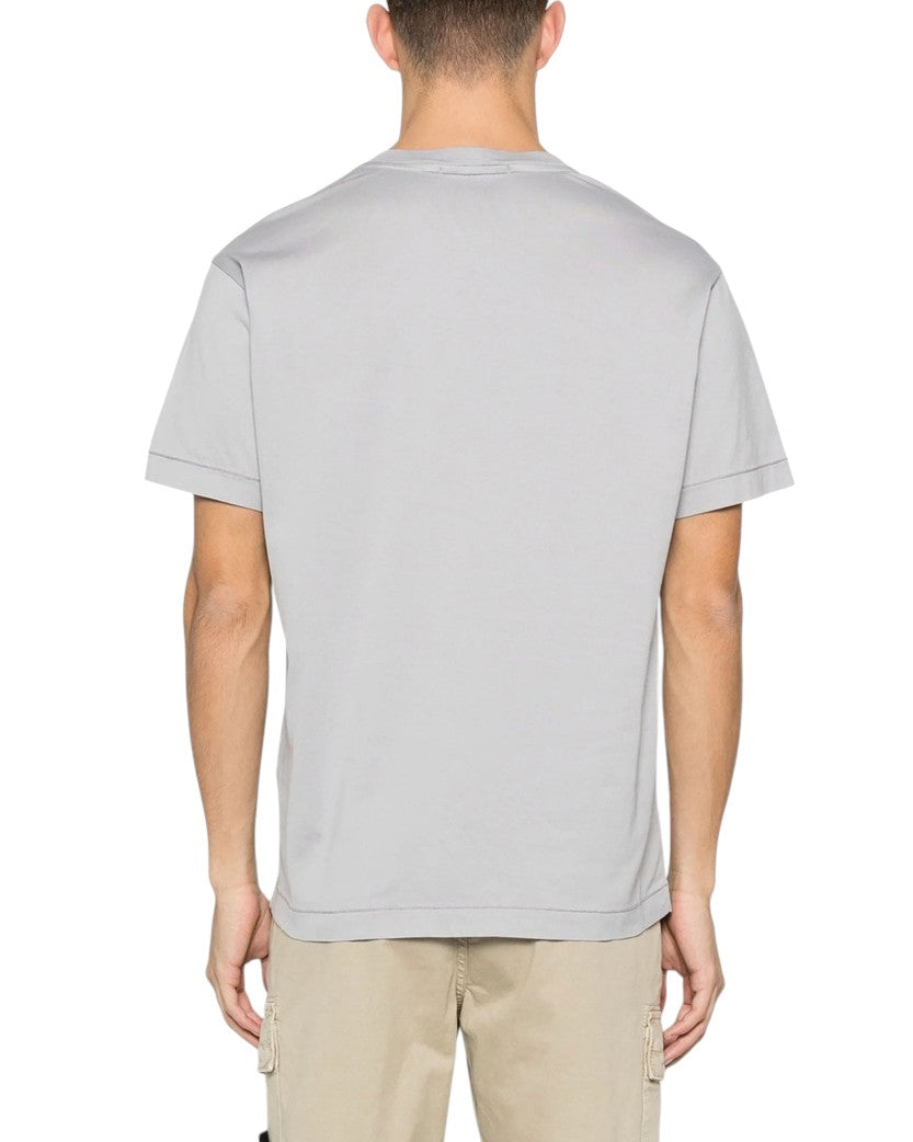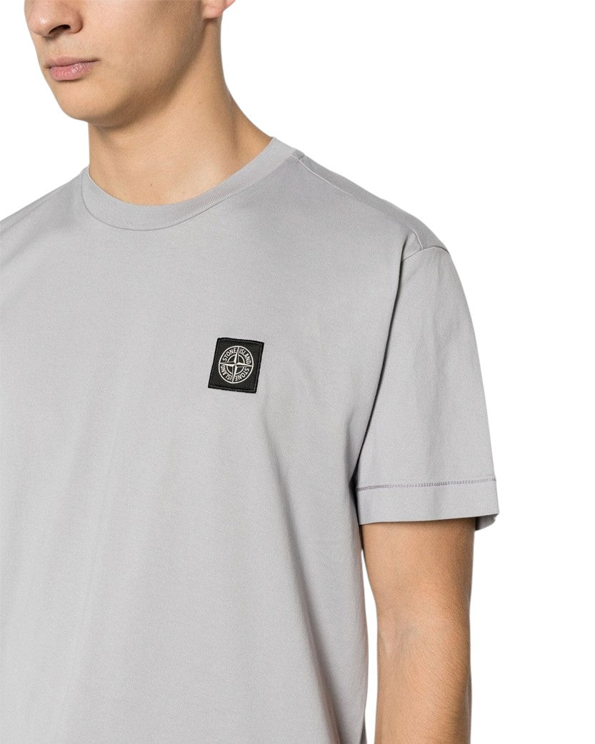 Футболка з короткими рукавами з мерсеризованого бавовняного джерсі. Виріб пофарбовано в готовому вигляді. Горловина в гумку. На грудях аплікація з емблемою Stone Island у вигляді рози вітрів. Рукава і низ оброблені вузьким кантом.