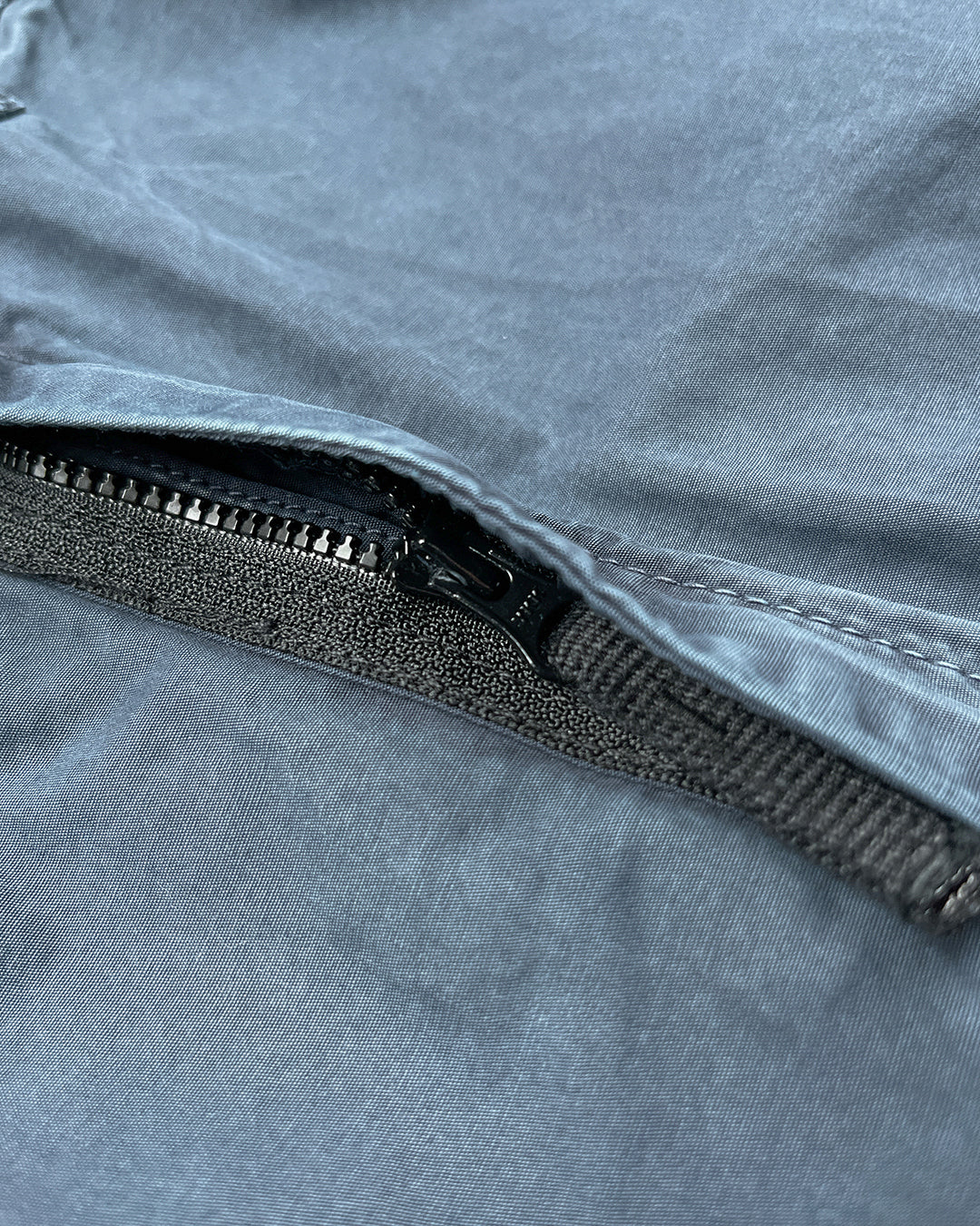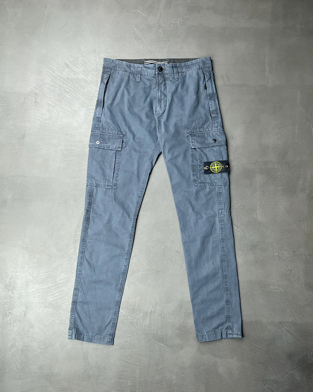 Брюки-карго з ломаного бавовняного твілу з ефектом старовинності. Ексклюзивна технологія фарбування готового виробу та наступного вицвітання OLD дозволяє надати текстурі трохи потертий вигляд і ефект 3D. Класичний заужений силует. Прорізні кишені на прихованій блискавці. Ззаду: прорізна кишеня на прихованому гудзику. На штанинах: нашита кишеня з клапаном на гудзику. Еластичний пояс з внутрішньою стяжкою.