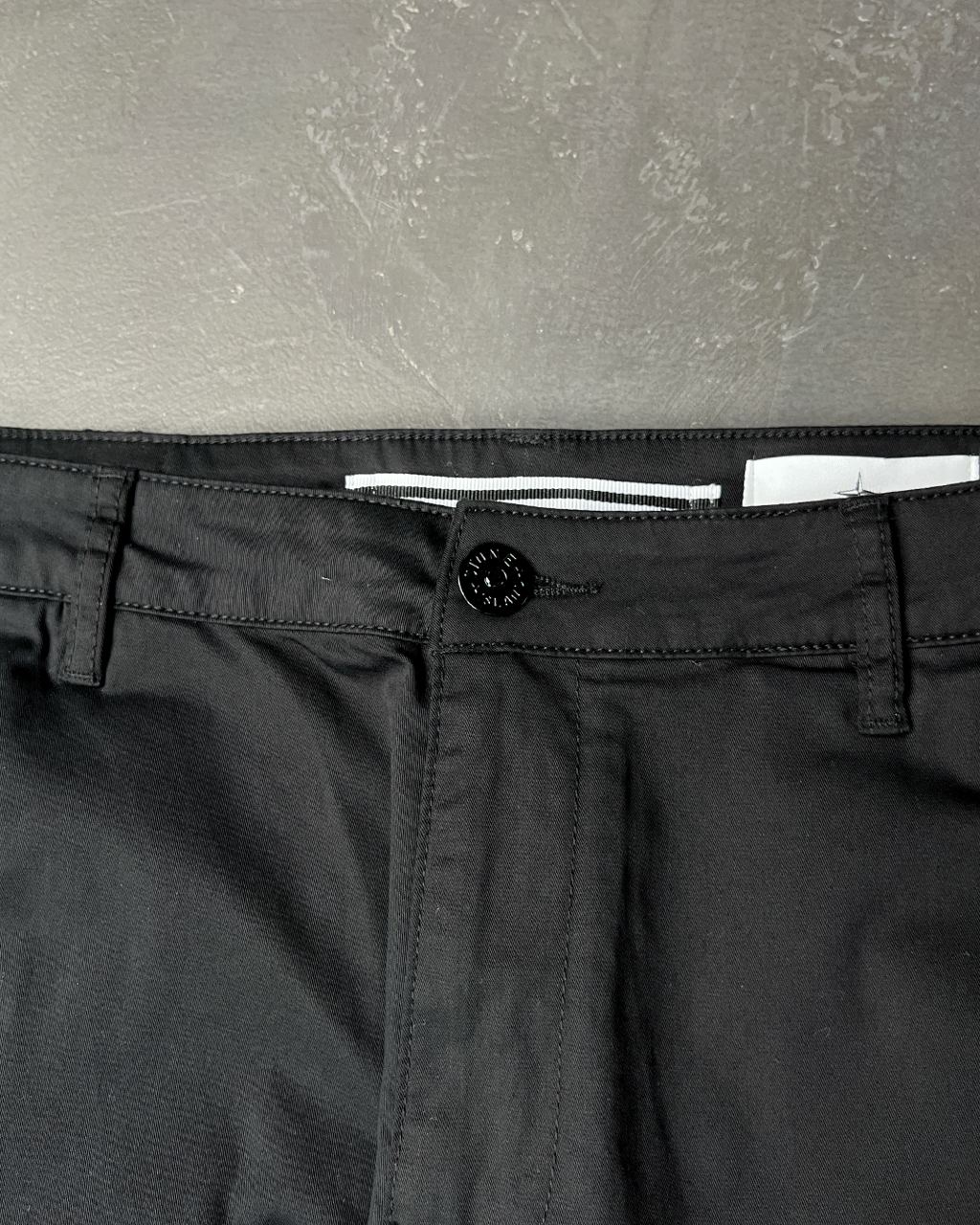 Звичайна заужена посадка. Кишені для рук у швах. Одна прорізна кишеня ззаду на прихованому гудзику. На кожній штанині по одній накладній кишені-книжці з клапаном на гудзику. Еластичний пояс з внутрішньою шнурівкою. Застібка-блискавка.