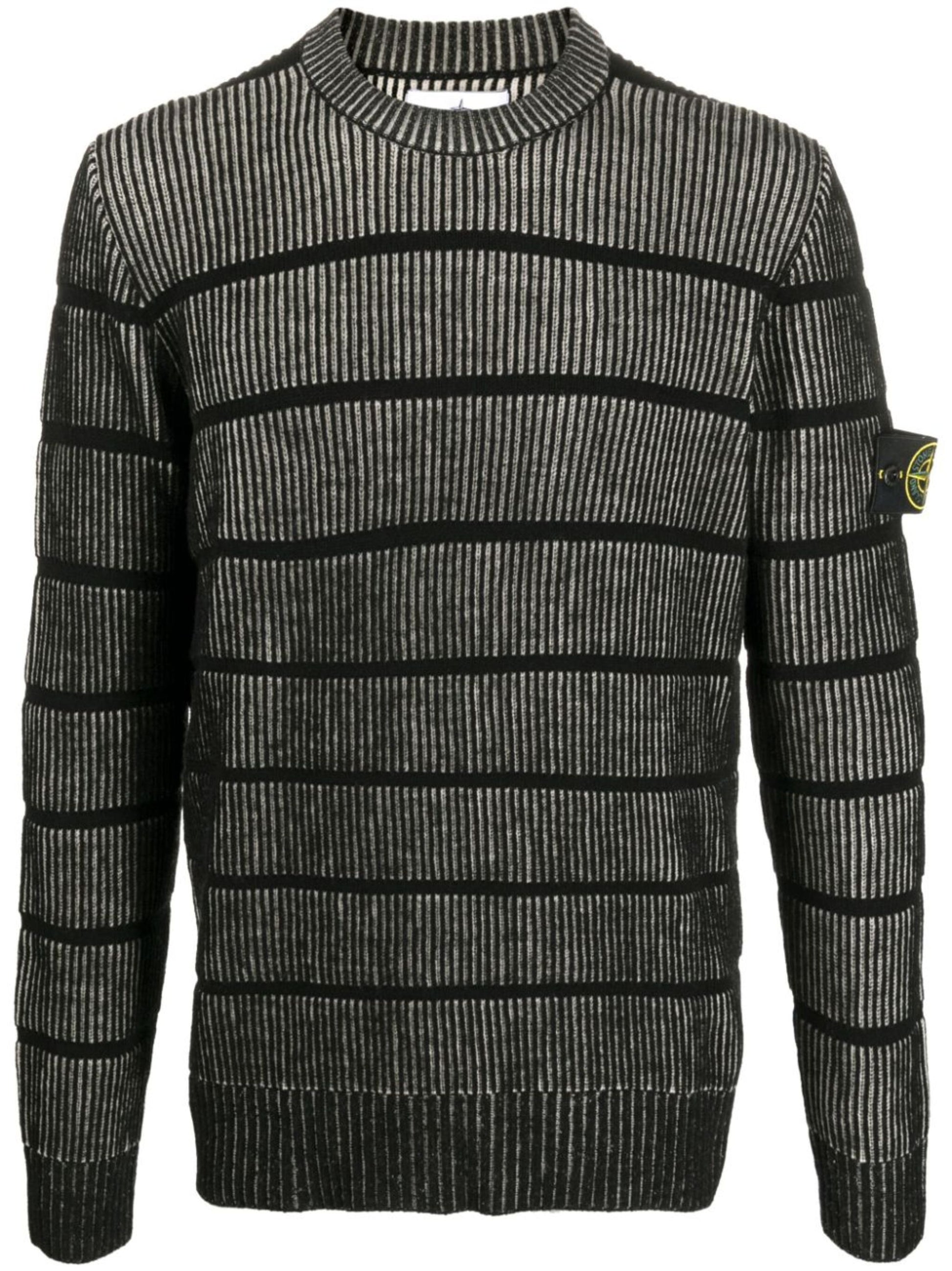 Stone Island 513D1 Striped Ribbed-Knit Sweater — це светр із м’якої вовняної суміші, створений у фактурному рубчастому в’язанні з рівномірними контрастними смужками. Класичний круглий виріз і ребристі манжети забезпечують комфорт і бездоганну посадку, а знімна нашивка з логотипом Stone Island на рукаві додає виробу автентичності та впізнаваного стилю бренду.
