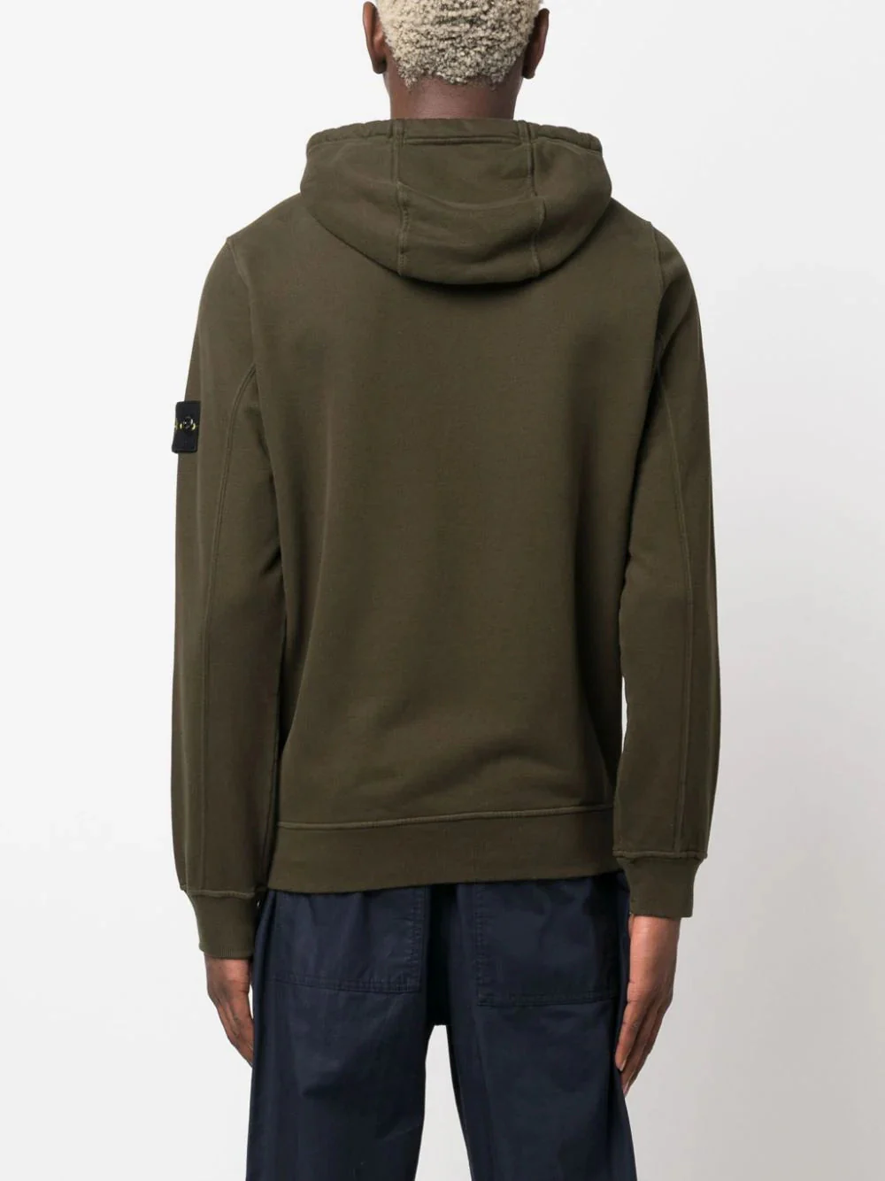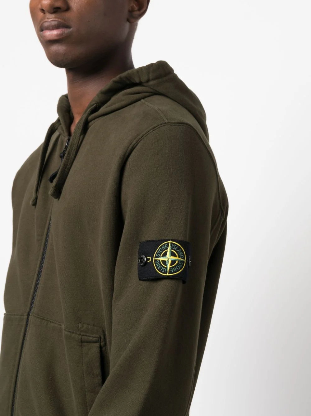 Худі з капюшоном на блискавці з ворсистого бавовняного флісу. Виріб пофарбований. Регулярний крій. Капюшон з контурним шнурком. Накладні кишені на кнопках. Значок Stone Island на лівому рукаві. Ребристі манжети і нижній пояс. Застібка на блискавку.