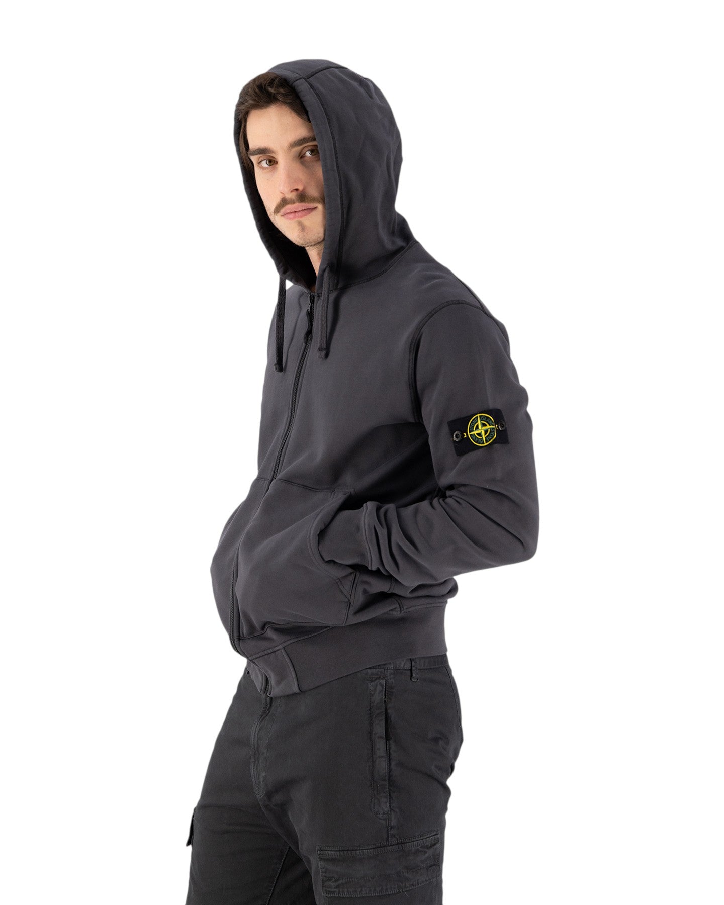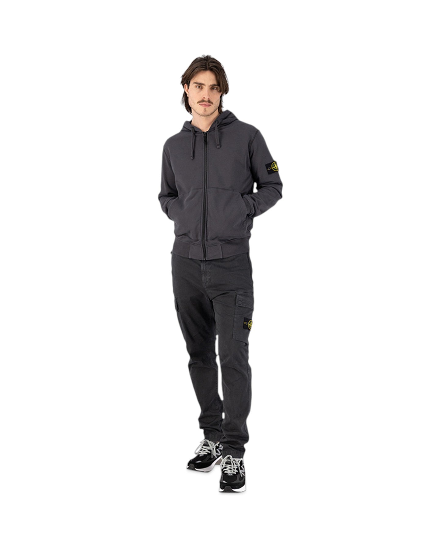 Худі виготовлене з бавовняного флісу має контурний шнурок на капюшоні, накладні кишені, прострочені шви, ребристі манжети і нижній пояс та застібку на блискавку. Значок Stone Island на лівому рукаві.