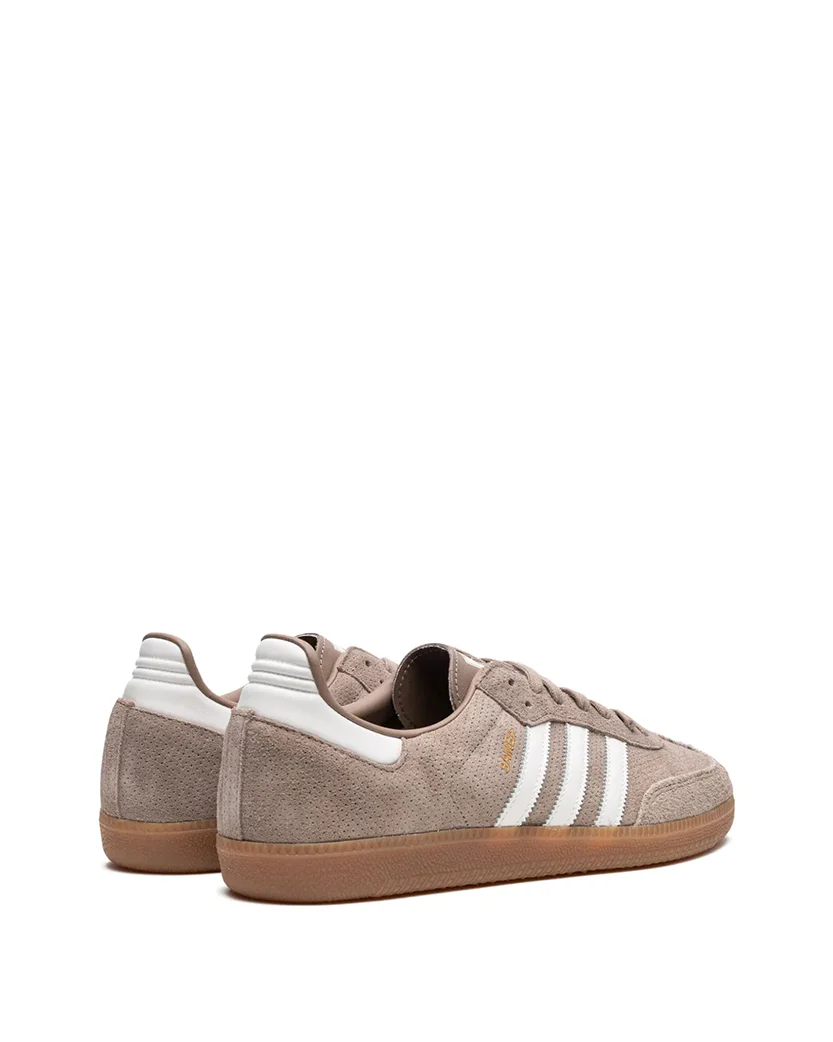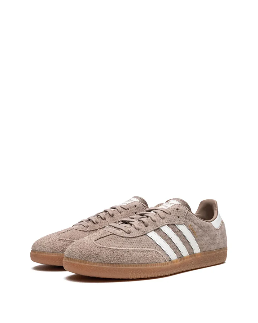 Adidas Samba OG 'Chalky Brown Gum' - це елегантні та стильні кросівки, які привертають увагу своїм оригінальним дизайном і високою якістю виконання. Ця модель натхненна класичними Samba, але має сучасні елементи та матеріали, роблячи їх ідеальним вибором для тих, хто цінує комфорт і стиль. Верх кросівок виконано з якісної замші та натуральної шкіри в приглушеному відтінку «Chalky Brown», що надає взуттю елегантного та стриманого вигляду. Цей нейтральний відтінок легко поєднується з різними стилями одягу, роблячи кросівки універсальними і придатними для повсякденного носіння. Характерний дизайн Samba з трьома смужками з боків і контрастним логотипом Adidas на язичку додає взуттю впізнаваного вигляду. Гнучка гумова підошва з протектором зі смоли забезпечує відмінне зчеплення з поверхнею і довговічність, роблячи кросівки ідеальними як для міських прогулянок, так і для спортивних заходів.