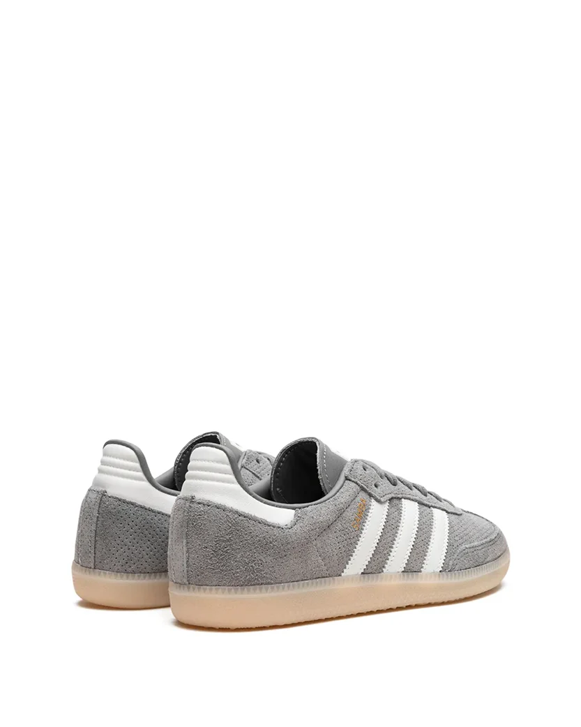 Представляючи сучасний погляд на ретро-модель, кросівки Adidas Samba OG 'Grey Bliss Orange' вирізняються приглушеними кольорами. Замшева основа, прикрашена класичним брендингом, має перфорацію по всій поверхні, що забезпечує ефективну вентиляцію. Помаранчева проміжна підошва забезпечує комфорт, гумова підошва - зчеплення з поверхнею, а надійна шнурівка - індивідуальну посадку.