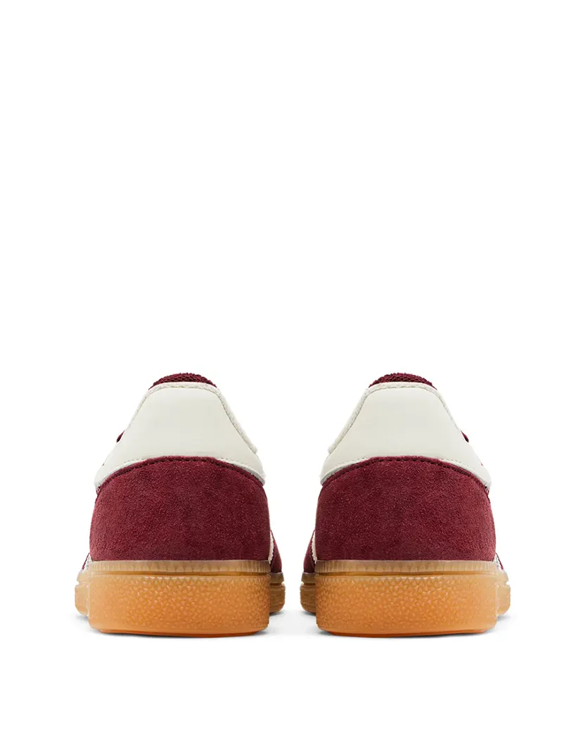 Кросівки Adidas Handball Spezial 'Shadow Red' із серії 'Corduroy Pack' поєднують класичний дизайн з оновленими матеріалами. Бордовий вельветовий верх доповнений замшевими накладками на носку та п’яті. Білі шкіряні смужки гармонійно поєднуються з задником і текстильною підкладкою. На бічній панелі розміщено тиснений напис «SPEZIAL», а гумова підошва забезпечує комфорт і зчеплення.