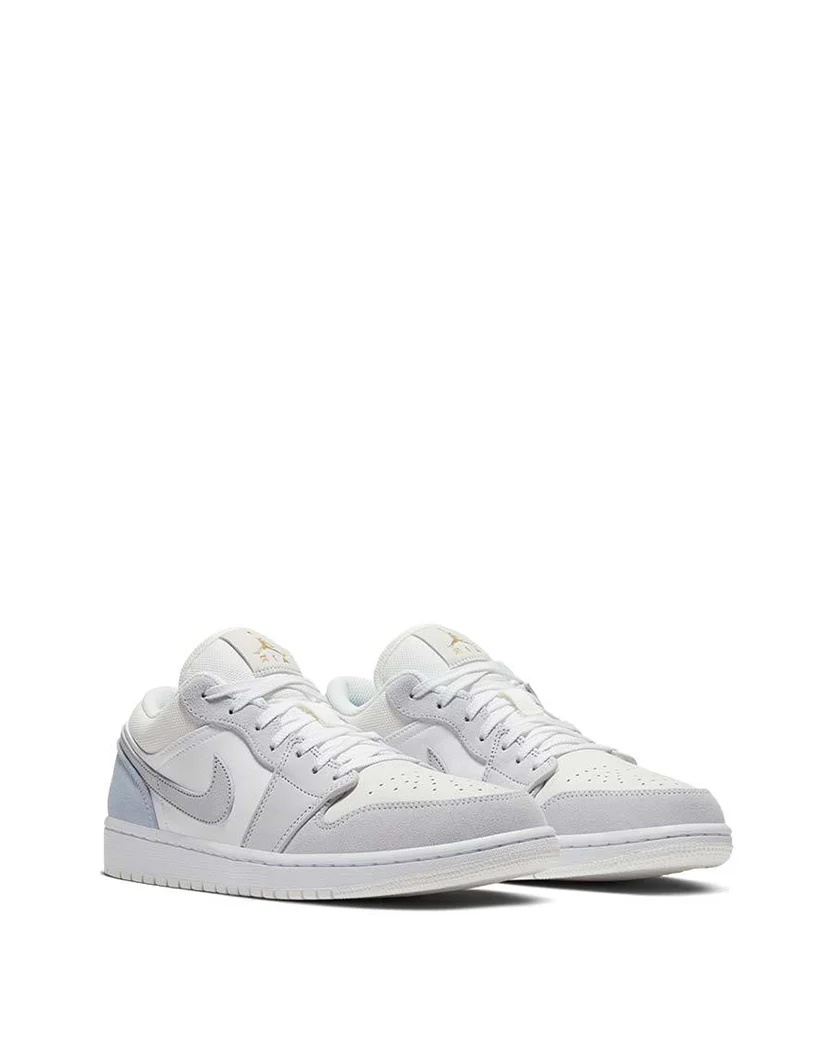 Новітні кросівки Air Jordan 1 Low 'Sky Grey' Paris від бренду Nike Jordan натхненні не чим іншим, як легендарними вулицями Парижа. Виготовлені з розкішних шарів еластичної шкіри та м'якої замші, кросівки виконані у стриманій кольоровій палітрі пастельних сірих відтінків. Залишаючись вірними своєму спортивному корінню, ці кросівки оснащені товстою гумовою підошвою, брендуванням Swoosh, крилатим мотивом бі-болу та завершуються золотистим логотипом.