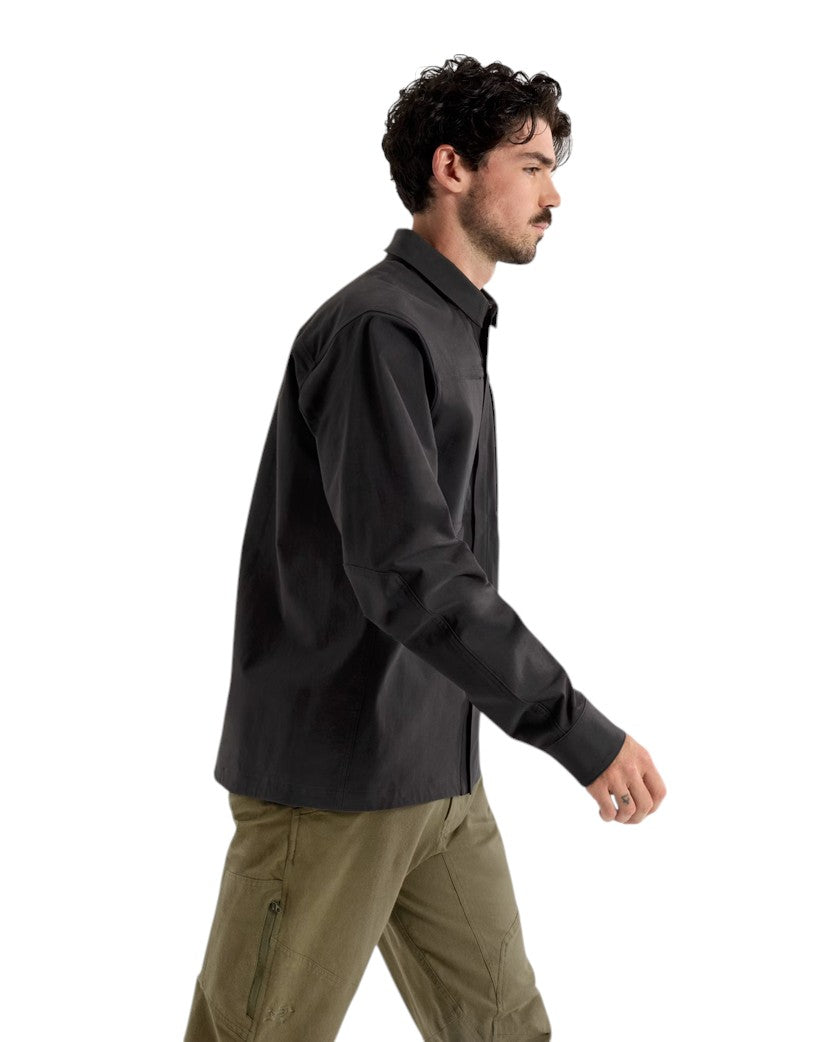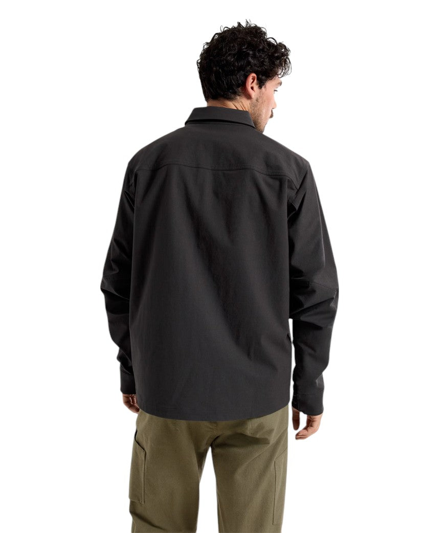 Arc'teryx Cronin Cotton Overshirt Black — щільна бавовняна сорочка з прямим кроєм і мінімалістичним дизайном. Чорний колір і накладні кишені на ґудзиках додають утилітарності, роблячи її ідеальною для міських багатошарових образів.