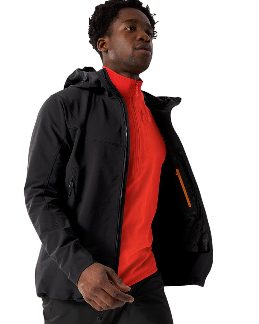 Arc'teryx Gamma Hoody Black – універсальна куртка-софтшел з капюшоном для гірських пригод і міських пригод. Виготовлена з міцного дихаючого матеріалу Fortius™ DW 2.0, вона захищає від вітру, не обмежуючи свободи рухів. Капюшон сумісний зі шоломом, анатомічний крій і зручні кишені додають практичності. Стриманий чорний дизайн робить її ідеальним вибором для тих, хто шукає поєднання технічних характеристик і повсякденного стилю.