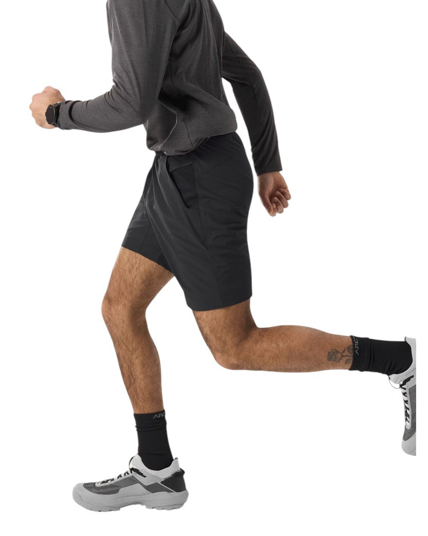 Arc'teryx Incendo Short 9 Black — легкі бігові шорти з дихаючого, швидковисихаючого матеріалу. Ергономічний крій, підкладка, регульований пояс і кишеня забезпечують комфорт під час бігу та активного дня в місті.