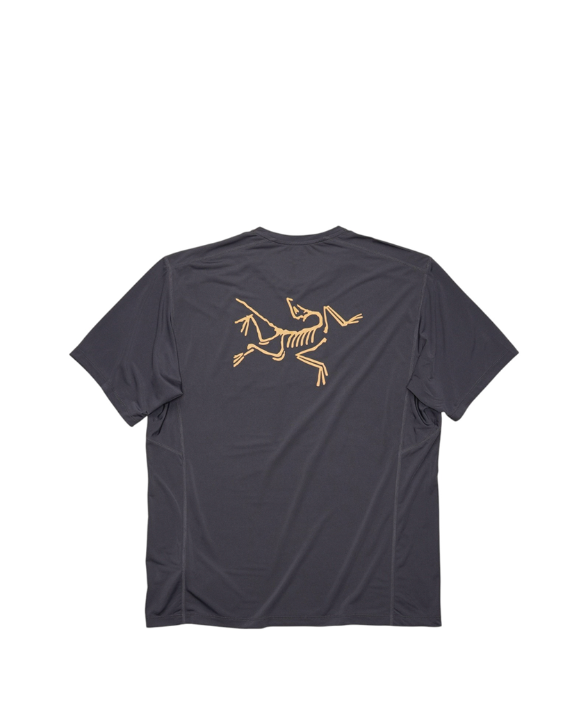 Arc'teryx Motus Arcword Crew SS T-Shirt Gold Logo Black — легка футболка з матеріалу Phasic™, що дихає та швидко висихає. Золотий логотип на чорному фоні додає стилю, а ергономічний крій і антимікробна обробка забезпечують комфорт для спорту й повсякденного носіння.