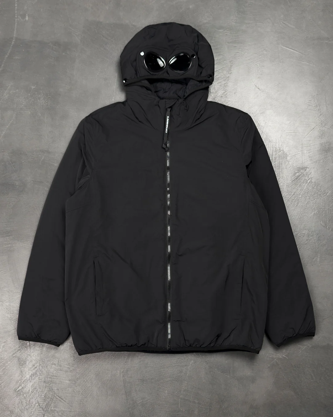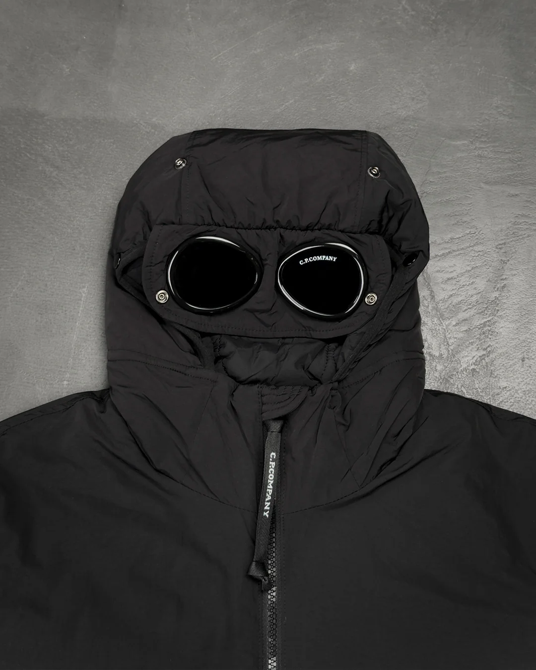 Куртка з капюшоном виготовлена з матеріалу Chrome-R (CR-L) на основі 100% нейлону. Капюшон має фіксовану конструкцію з фірмовими лінзами Goggle. Модель оснащена повною застібкою-блискавкою, двома зручними бічними кишенями на блискавці для зберігання речей та внутрішньою кишенею з логотипом бренду.
