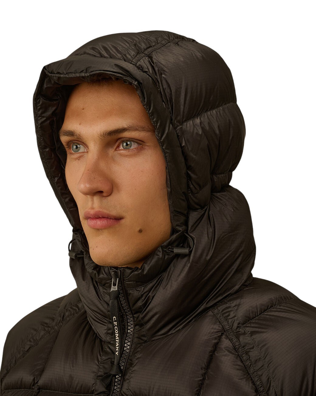 Короткий пуховик з регульованим капюшоном, застібкою-блискавкою та фірмовим логотипом C.P. Company Lens. Також виріб має бічні кишені, внутрішню кишеню та регульований поділ. Ця модель виготовлена за тим же принципом, що й попередні моделі, але з використанням непрозорого нейлону товщиною 7 ден. Цей тонший нейлон без покриття в поєднанні з процесом прямого впорскування пуху робить одяг ще м'якшим.