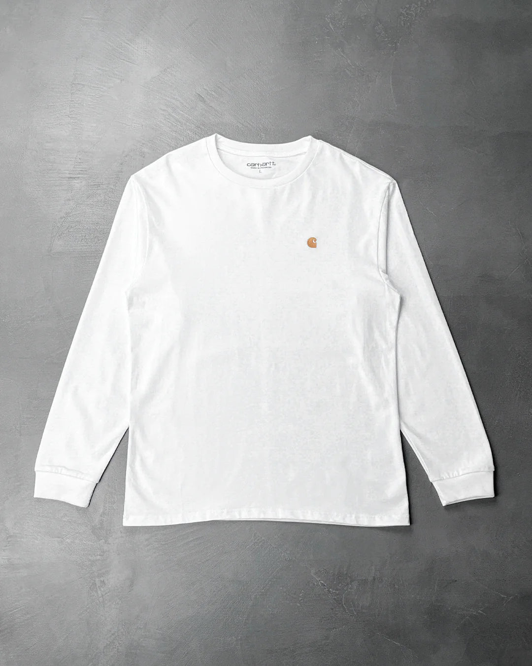Carhartt WIP Chase Golden Logo Long Sleeve White