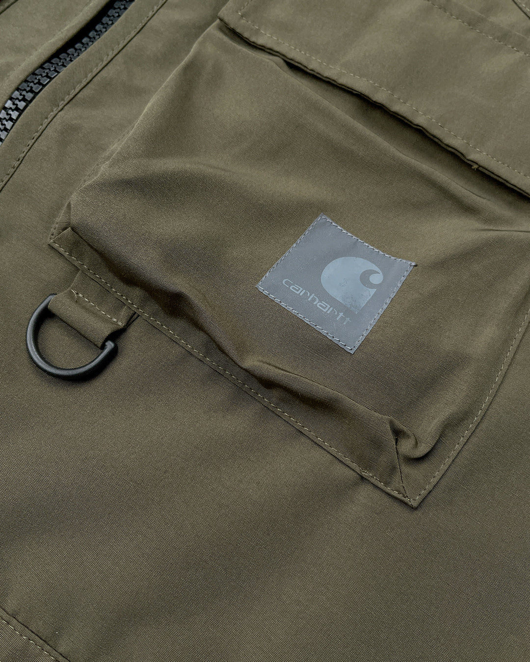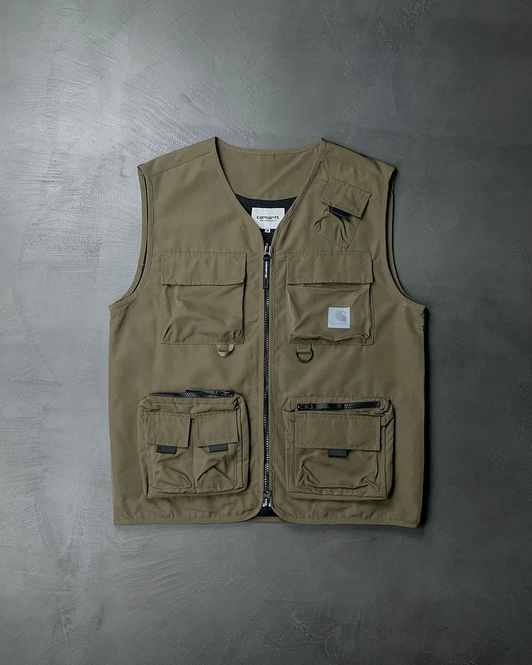 З урахуванням популярності жилетів цього сезону, Carhartt WIP представляє жилет Elmwood. Цей жилет має кілька нагрудних кишень, деталь у вигляді D-подібного кільця та світловідбиваючу нашивку з логотипом, що надає йому утилітарний вигляд.