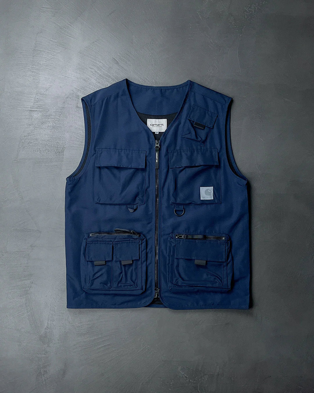 З урахуванням популярності жилетів цього сезону, Carhartt WIP представляє жилет Elmwood. Цей жилет має кілька нагрудних кишень, деталь у вигляді D-подібного кільця та світловідбиваючу нашивку з логотипом, що надає йому утилітарний вигляд.