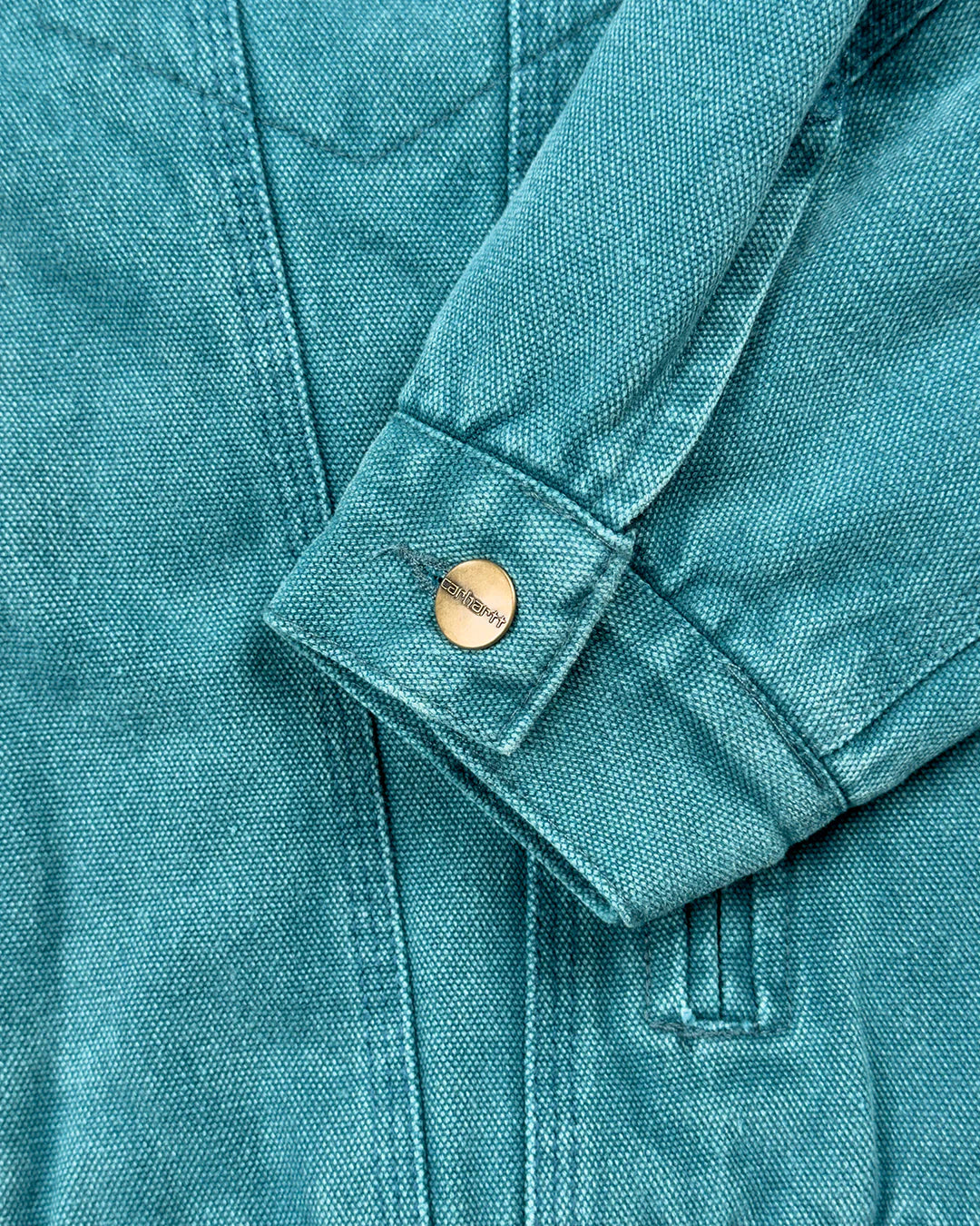 Carhartt WIP J10 Vintage Jacket - це класична куртка від Carhartt WIP у стилі вінтаж. Вона має ретро дизайн і виготовлена з високоякісного матеріалу, що забезпечує комфорт і довговічність. Куртка застібається на кнопки, має дві бічні та дві нагрудні кишені, одна з яких прикрашена логотипом бренду.