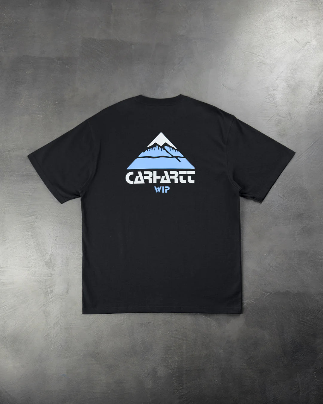 Новинка від Carhartt WIP - футболка Mountain. Виготовлена зі 100% бавовни та скроєна з ребристим трикотажним коміром, що підтримує комфортний силует. Ця графічна футболка має принт Mountain, надрукований на спині в холодних відтінках синього та сірого. На грудях надруковано логотип Carhartt WIP.