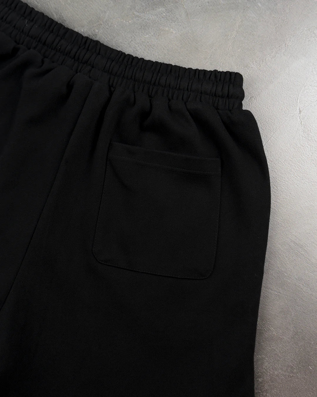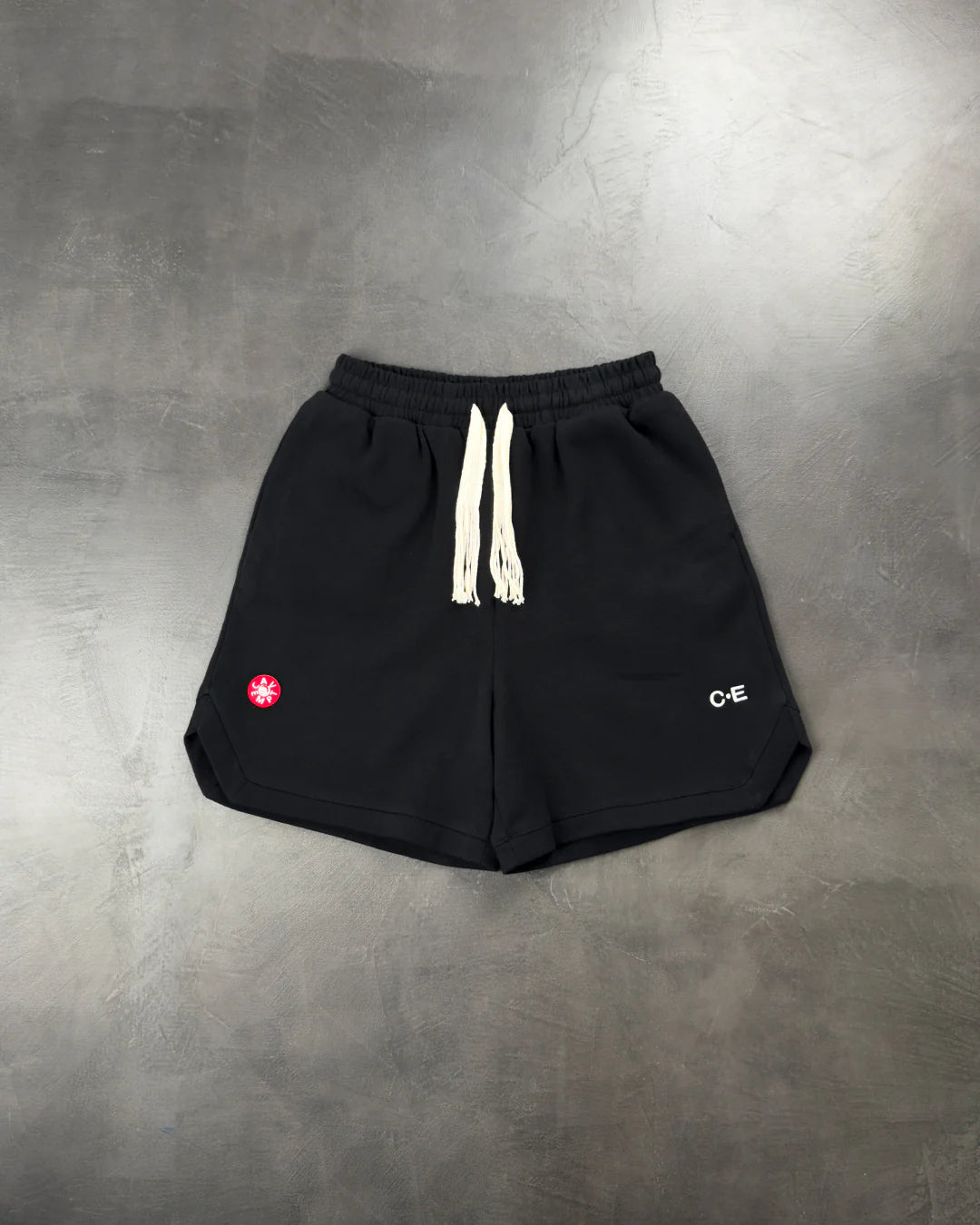 Шорти від CAV EMPT виготовлені з якісного бавовняного матеріалу чорного кольору. Доповнені еластичним поясом на шнурку та накладною кишенею ззаду. Прикрашені вишитим брендингом та червоною прогумованою нашивкою з логотипом.