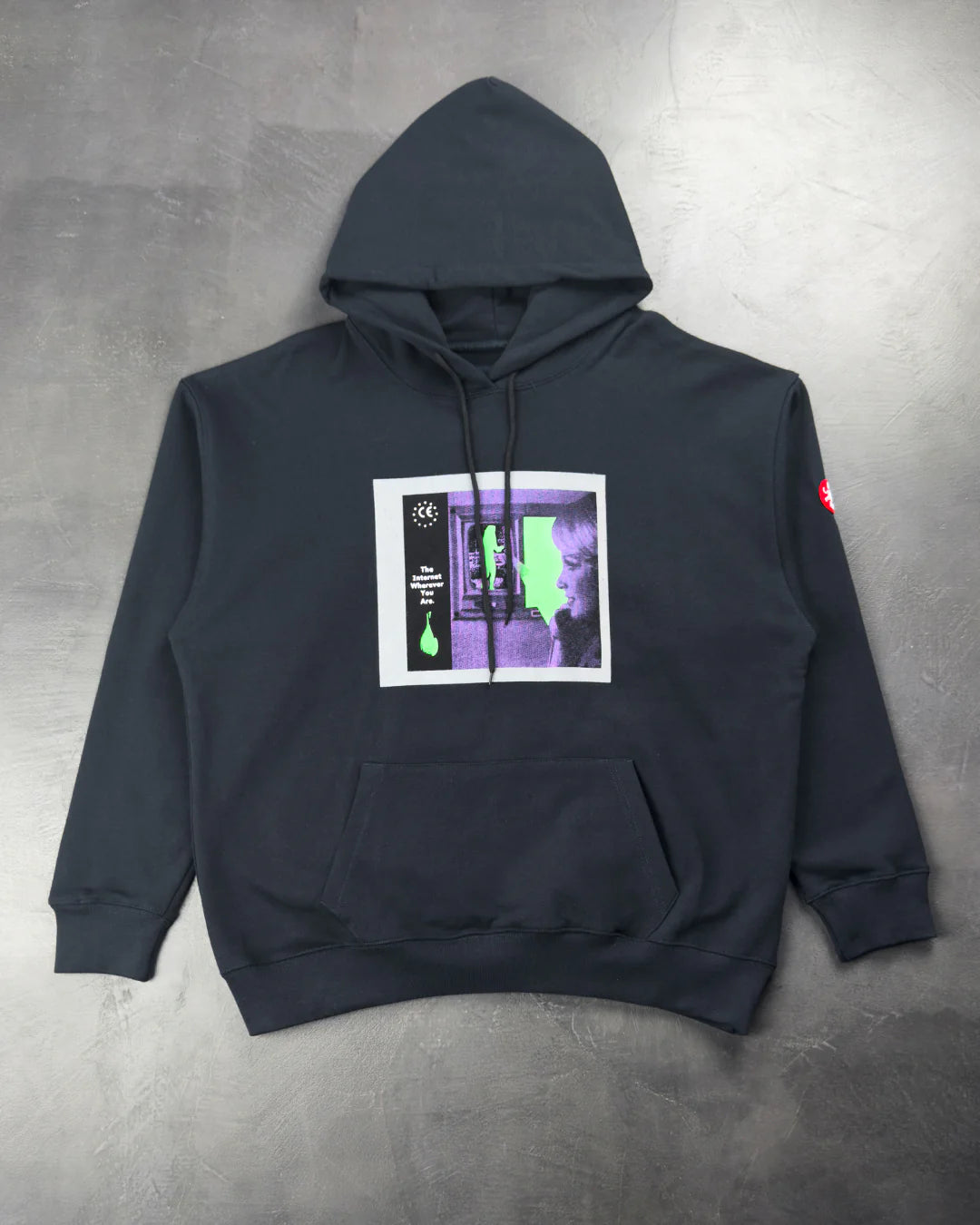 Худі чорного кольору від CAV EMPT виготовлене з бавовняного матеріалу. Капюшон на шнурку, ребристі манжети і поділ, зручна кишеня-кенгуру. Худі доповнене графічним принтом на грудях, внутрішньою нашивкою у вигляді піраміди та простроченим контуром з друкованою графікою на спині та червоним прогумованим логотипом на лівому рукаві.