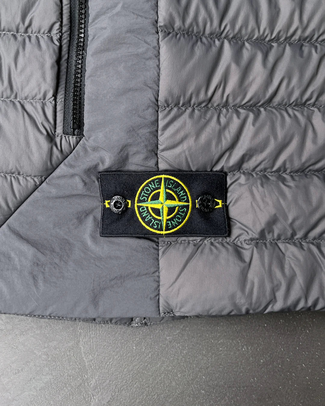 Жилет Stone Island зшитий з нейлону і наповнений кращим пір'ям, обов'язково зігріє вас у холодну погоду. Ребристі вставки розширюють діапазон рухів, а двостороння блискавка по всій довжині надійно закриває цей універсальний предмет одягу.