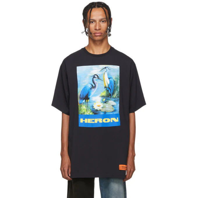 Heron Preston Heron Birds T-Shirt — знакова футболка бренду, натхненна образом дикої чаплі — символу Heron Preston. Виготовлена зі 100% бавовни преміум-якості, модель має прямий крій, круглу ребристу горловину та м’яку приємну текстуру, що гарантує комфорт у повсякденному носінні. Центральний акцент — яскравий графічний принт із зображенням чапель, який поєднує мистецький підхід і стрітстайл-естетику, створюючи впізнаваний візуальний код бренду.