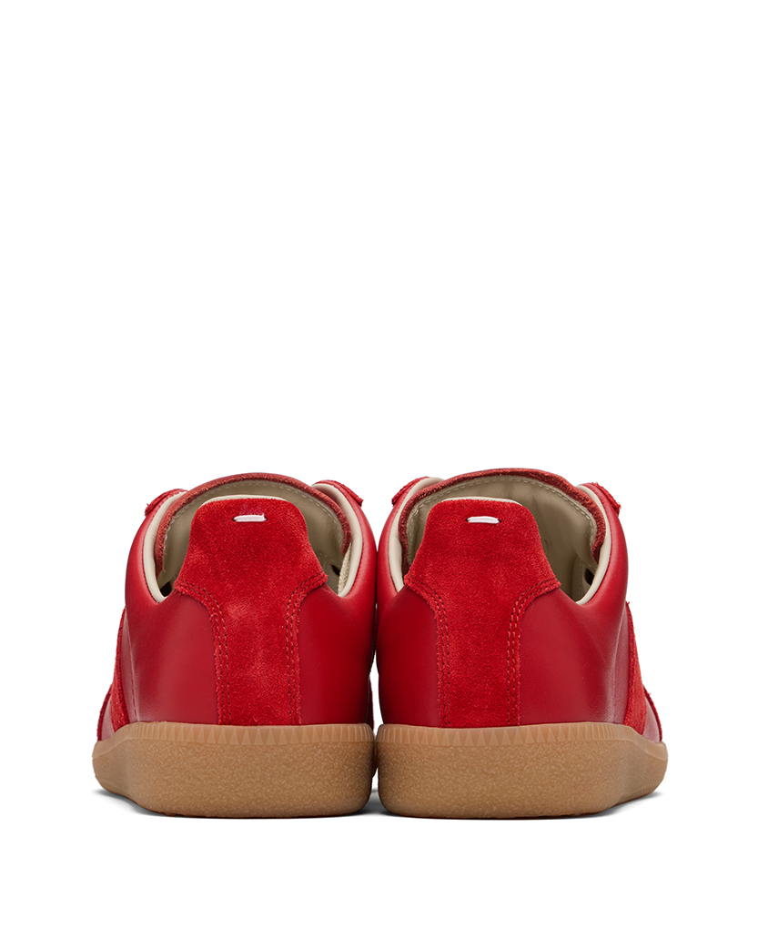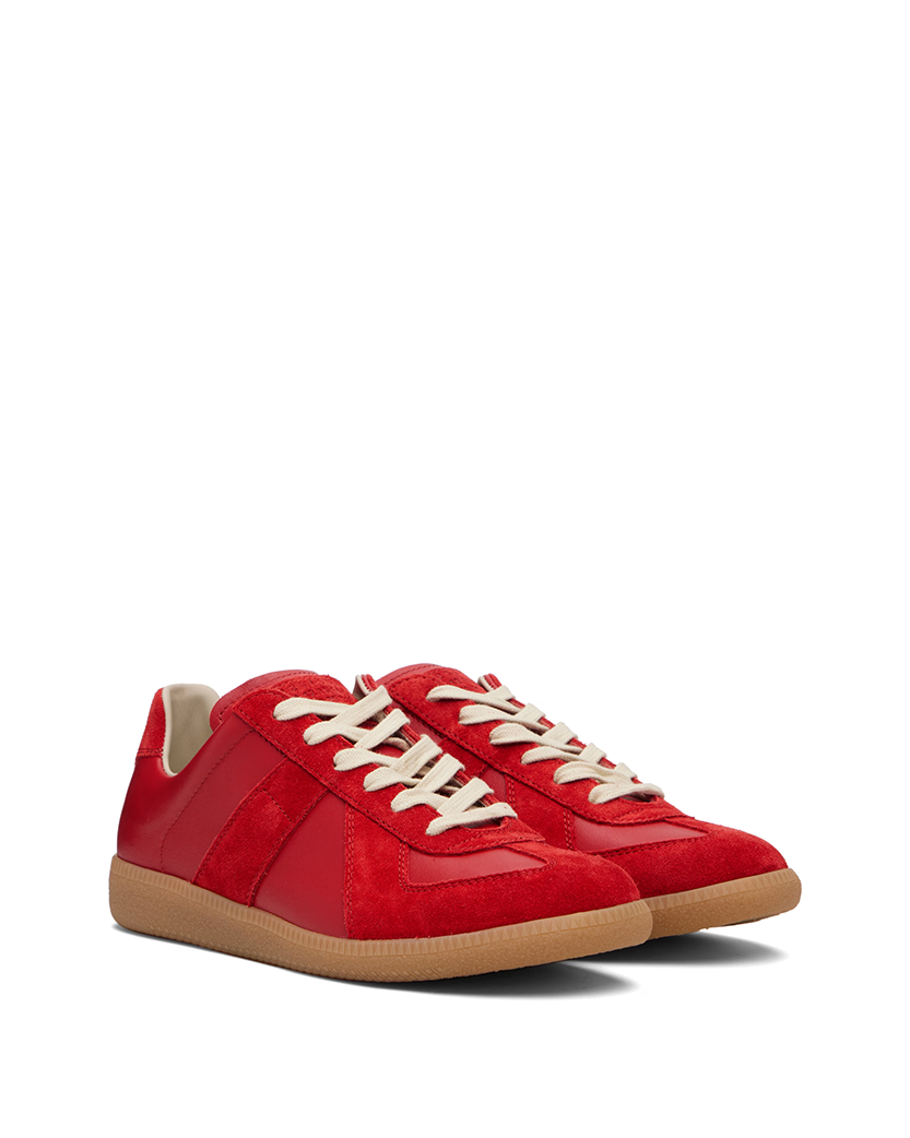 Maison Margiela Replica Sneakers — легендарна модель, що переосмислює класичне спортивне взуття 70-х років через призму сучасного дизайну. Виготовлені з преміальної шкіри наппа у поєднанні з м’якою замшею, ці кросівки поєднують мінімалістичну естетику з продуманою функціональністю. Гнучка гумова підошва гарантує зносостійкість і зчеплення, а м’яка бавовняна підкладка — комфорт у щоденному носінні. Завершальними акцентами слугують фірмова номерна етикетка на язичку та характерне ручне маркування. Модель втілює ідею колекції «Replica» як даниною архівній моді з актуальним трактуванням від Maison Margiela.