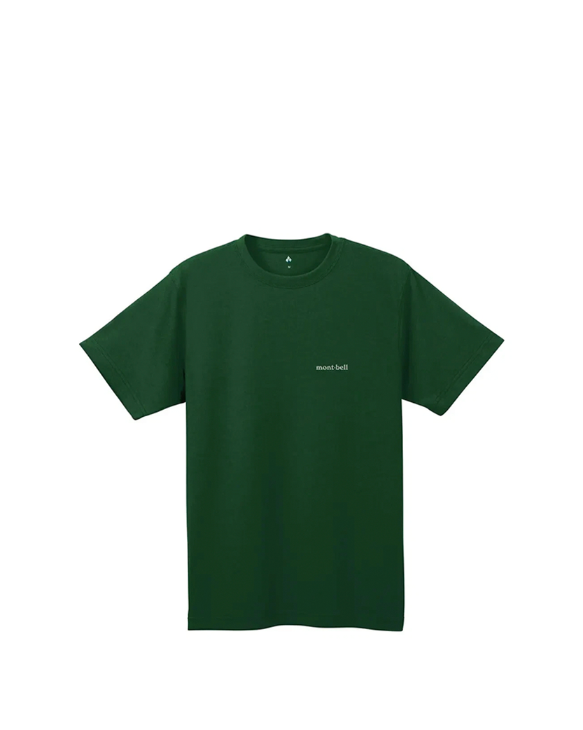 Mont Bell Wickron T-shirt Dark Green — легка й дихаюча футболка з матеріалу Wickron®, що швидко сохне та відводить вологу. Має антимікробну обробку, м’яку текстуру та зелений колір — ідеально для активностей і повсякденного носіння.