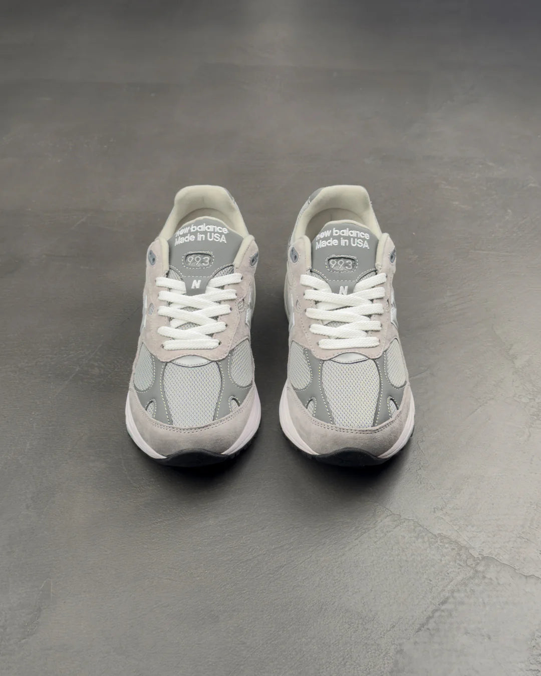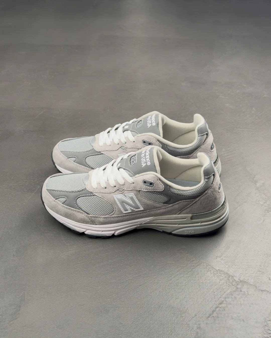 Модель 993 повернулася в одному з найбажаніших своїх образів, виконаному у фірмовому сірому кольорі New Balance. Беззаперечний фаворит легендарної серії 990, витончений силует має високоякісну замшу у верхній частині, поєднану з частинами сітки для покращення повітропроникності. Знизу проміжна підошва оснащена амортизацією ABZORB, яка працює в тандемі з амортизацією ACTEVA для забезпечення гнучкої підтримки. Оновлені низькі халяви прикрашені культовим логотипом N, на додаток до брендингу Made in USA для завершення образу. Спочатку розроблені для бігу, кросівки 993 тепер є основним елементом повсякденного одягу, який все ще забезпечує комфорт протягом усього дня.