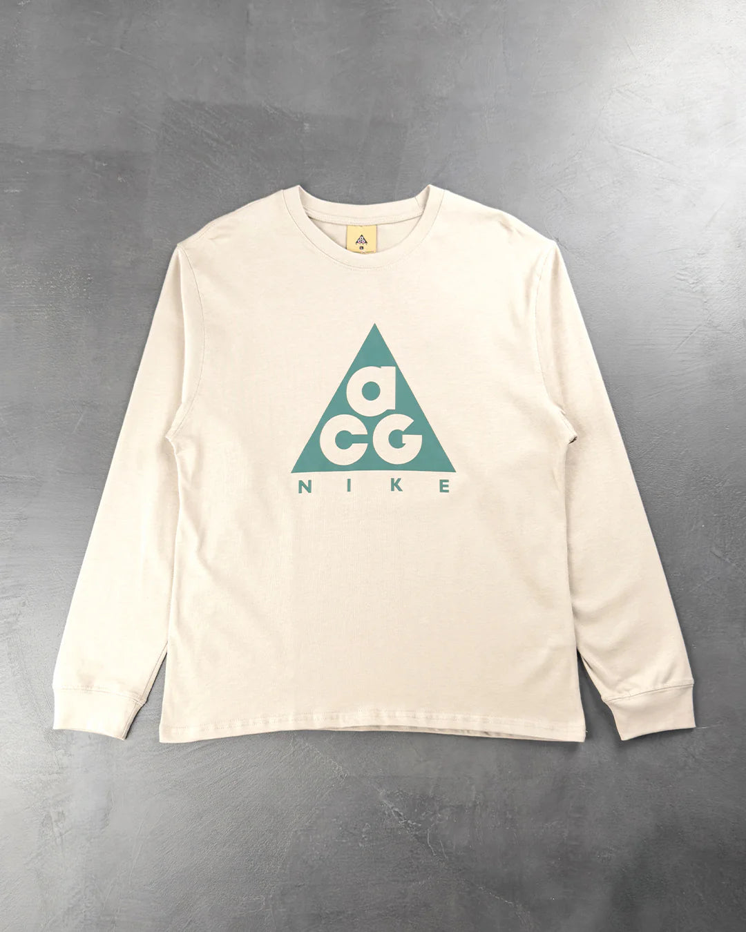 Лонгслів від Nike ACG виготовлений із натуральної бавовни, має ребристу круглу горловину та ребристі манжети. На грудях розміщений трикутний логотип, який надає вашому образу естетичності та робить його привабливим.