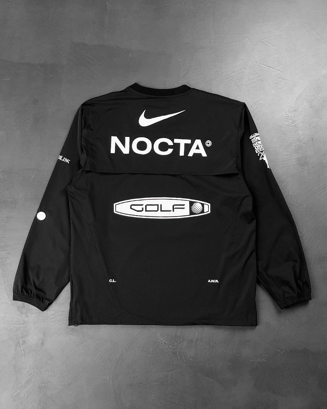 Лонгслів Golf Crewneck Top від Nike x Drake NOCTA виготовлений з нейлону, що надає виробу легкості та забезпечує комфорт при носінні. На спині присутня сітчаста вставка для поліпшення повітропроникності. Еластичні вставки на рукавах і затяжка подолу дають змогу регулювати посадку максимально комфортним чином. Принт на рукаві відсилає до найбільшого власника ключок для гольфу в Канаді. Підходить як для занять спортом, так і для повсякденного носіння.