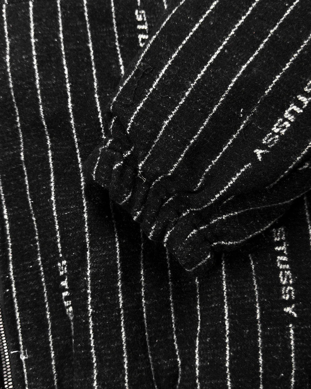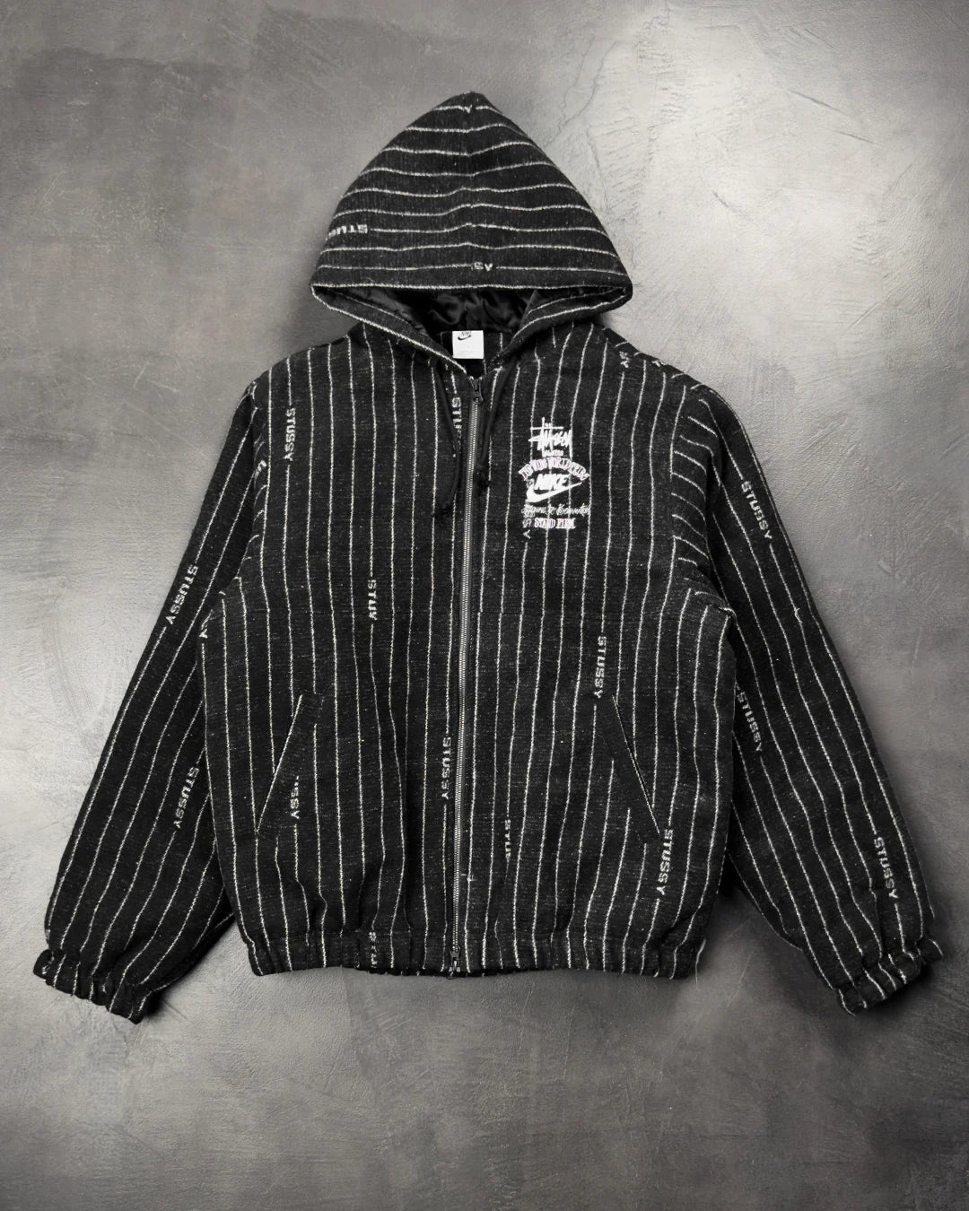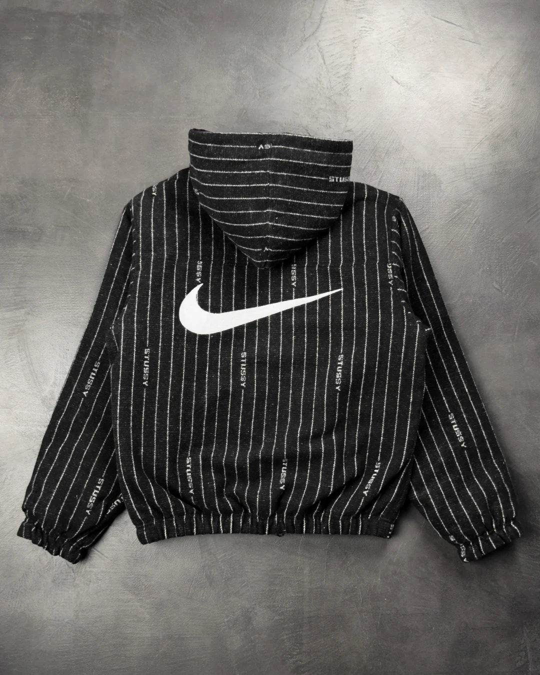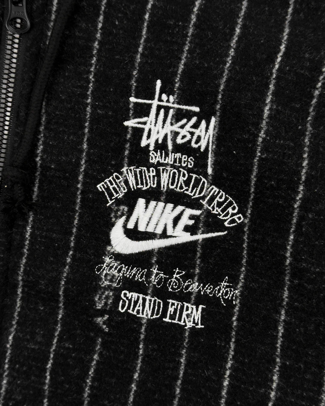 Nike Stripe Wool Jacket x Stüssy - це преміальна версія класичної спортивної куртки. Вовняна куртка в тонку смужку від Nike та їхнього давнього партнера Stüssy має застібку-блискавку, просторий капюшон і вишитий графічний малюнок на грудях зліва. Зручна куртка оснащена еластичними манжетами та подолом, а ззаду має великий логотип Swoosh.