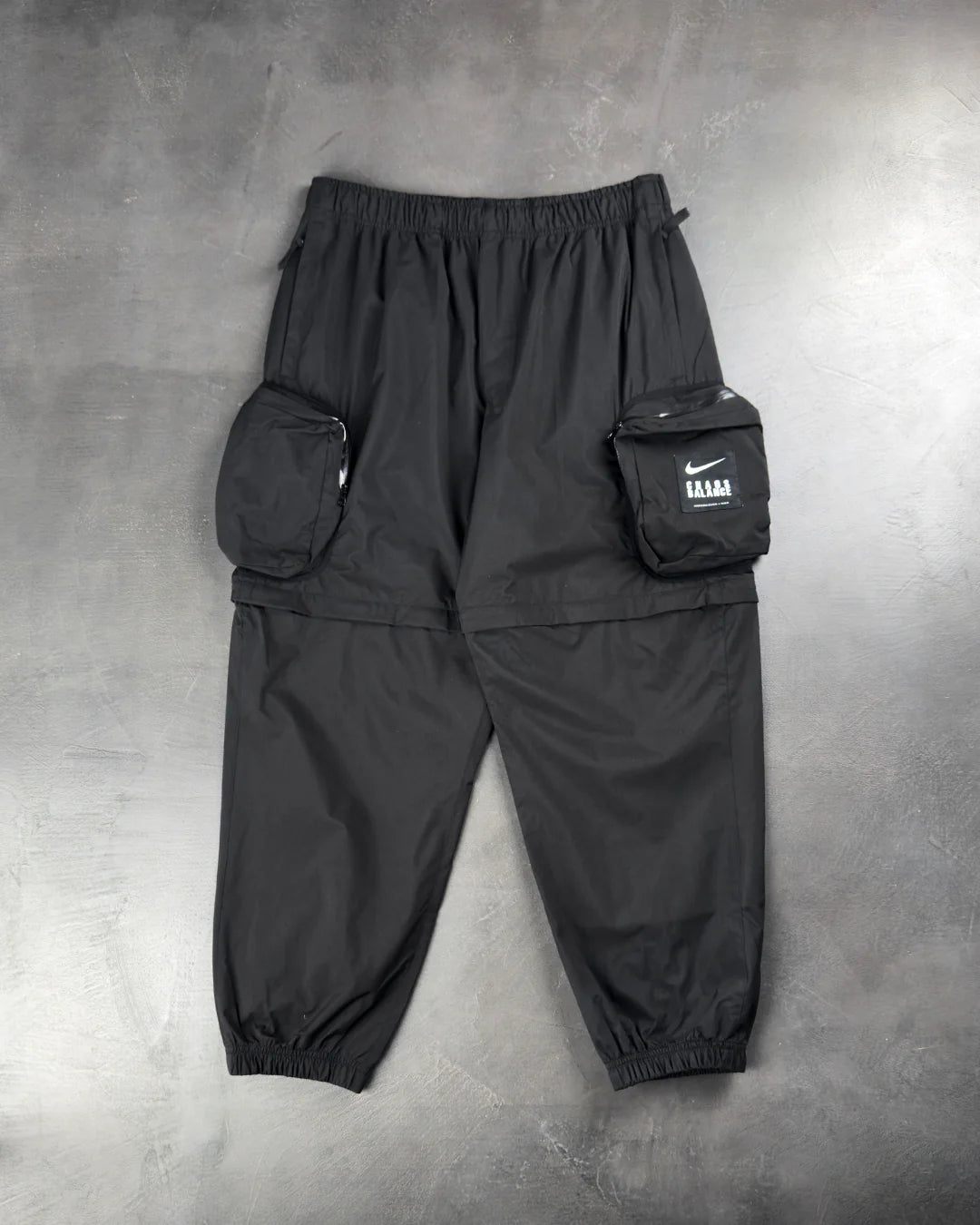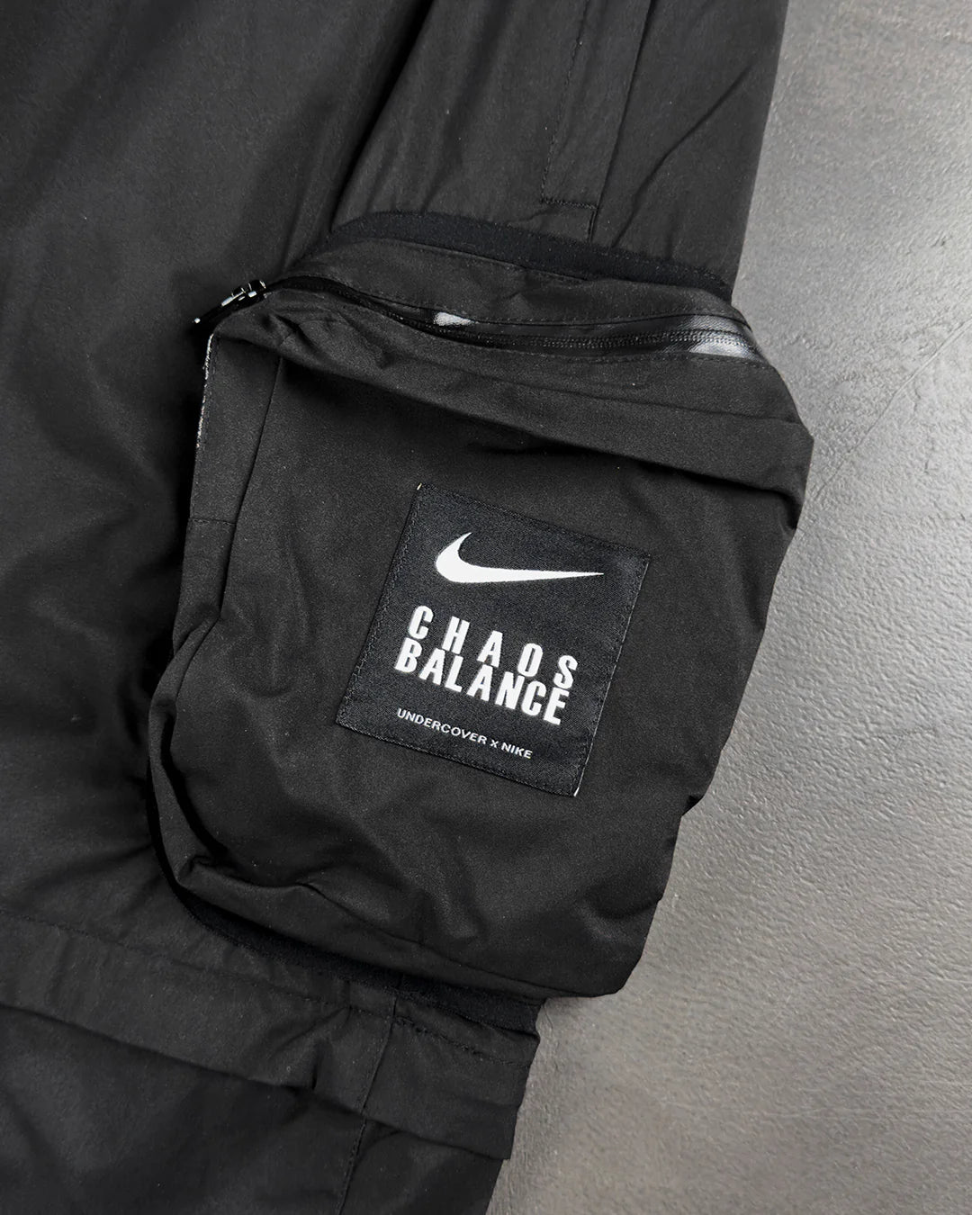 Ці штани Nike x Undercover 2-в-1 у партнерстві з Jun Takahashi мають застібку-блискавку та кишені з фірмовим логотипом Jun "Chaos and Balance" ("Хаос і рівновага"). Чорні штани виготовлені з водонепроникної тканини, яка забезпечує приємне відчуття та допомагає вам залишатися сухими, а герметична конструкція швів захищає від проникнення атмосферних опадів.