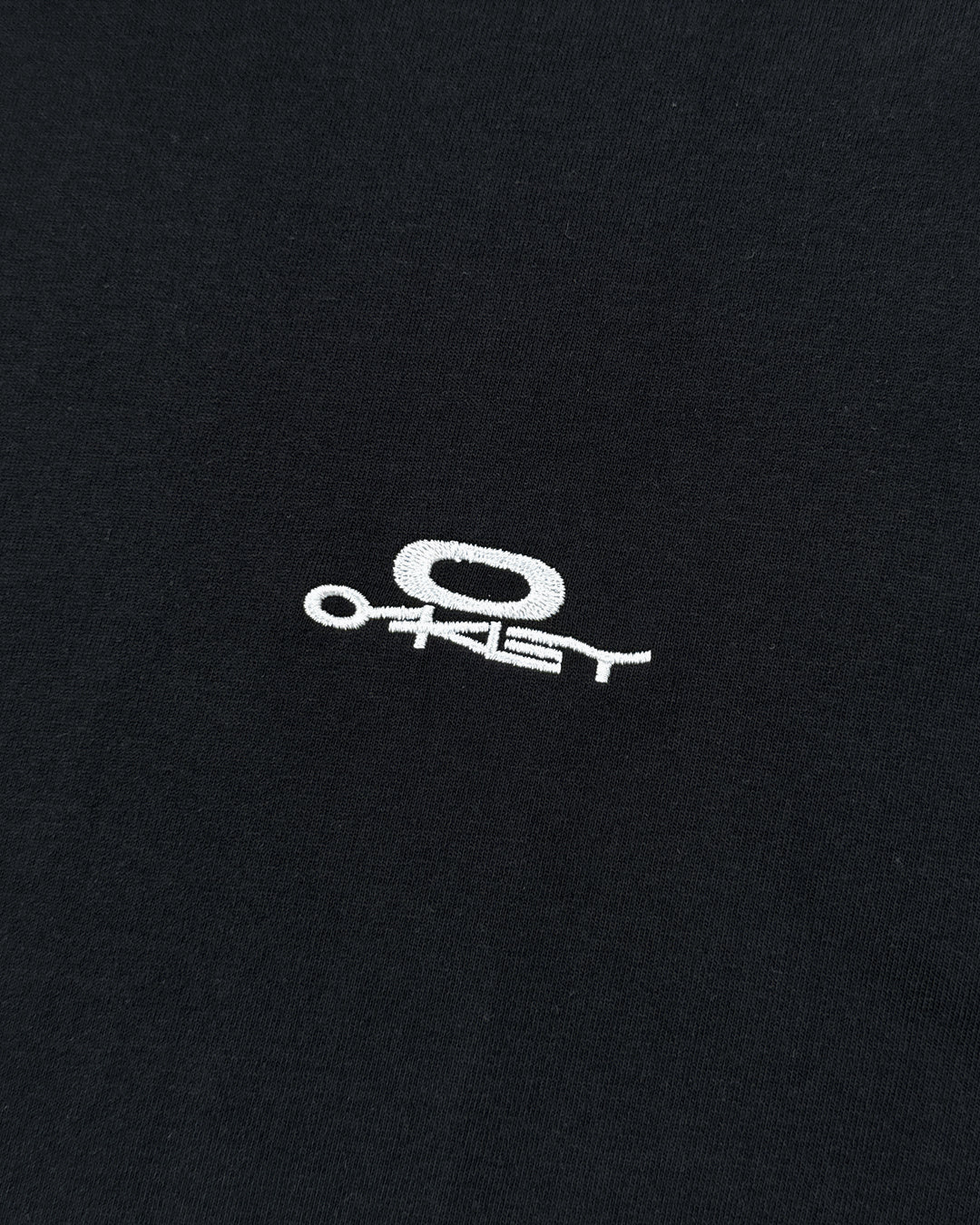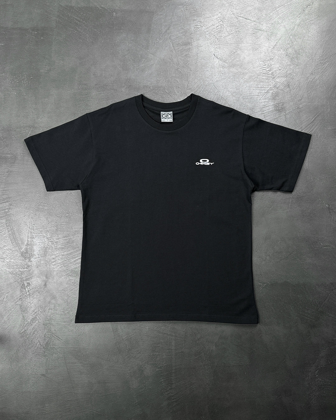 Класична футболка чорного кольору від Oakley з вишитим брендингом на грудях. Має вільний крій та виготовлена з важкої бавовняної тканини.