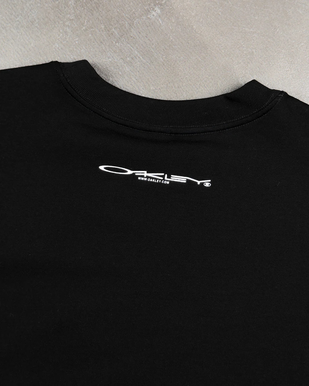 Вінтажна чорна футболка від Oakley з друкованим контрастним брендингом спереду та ззаду. Має вільний крій та виготовлена з важкої бавовняної тканини.