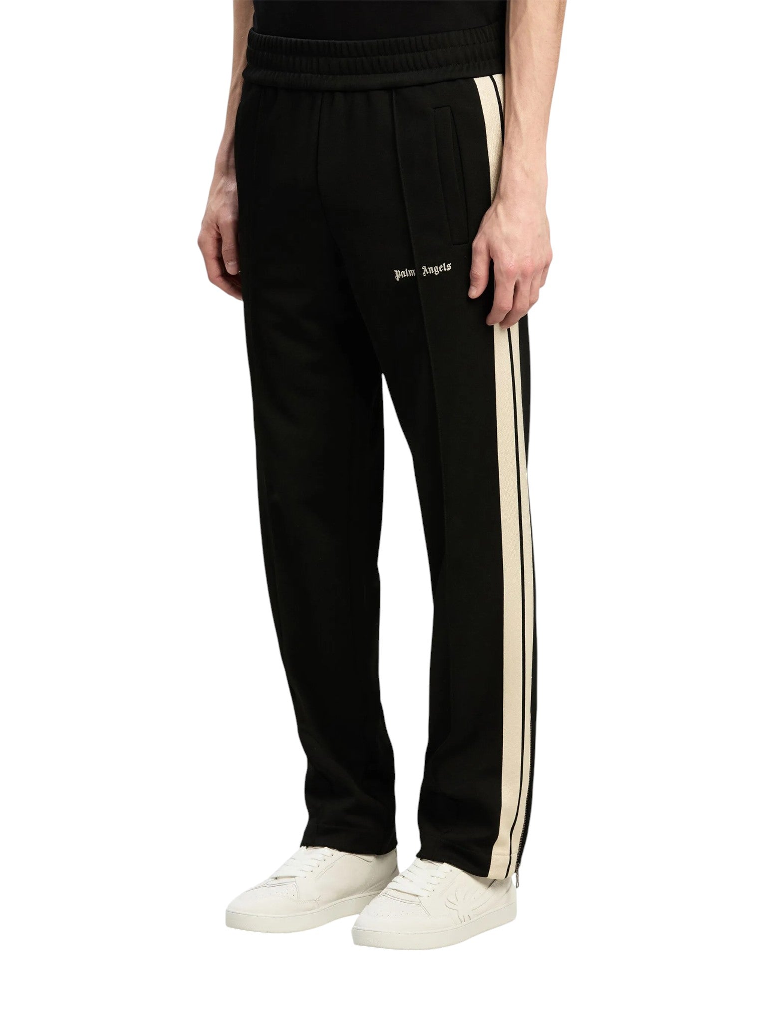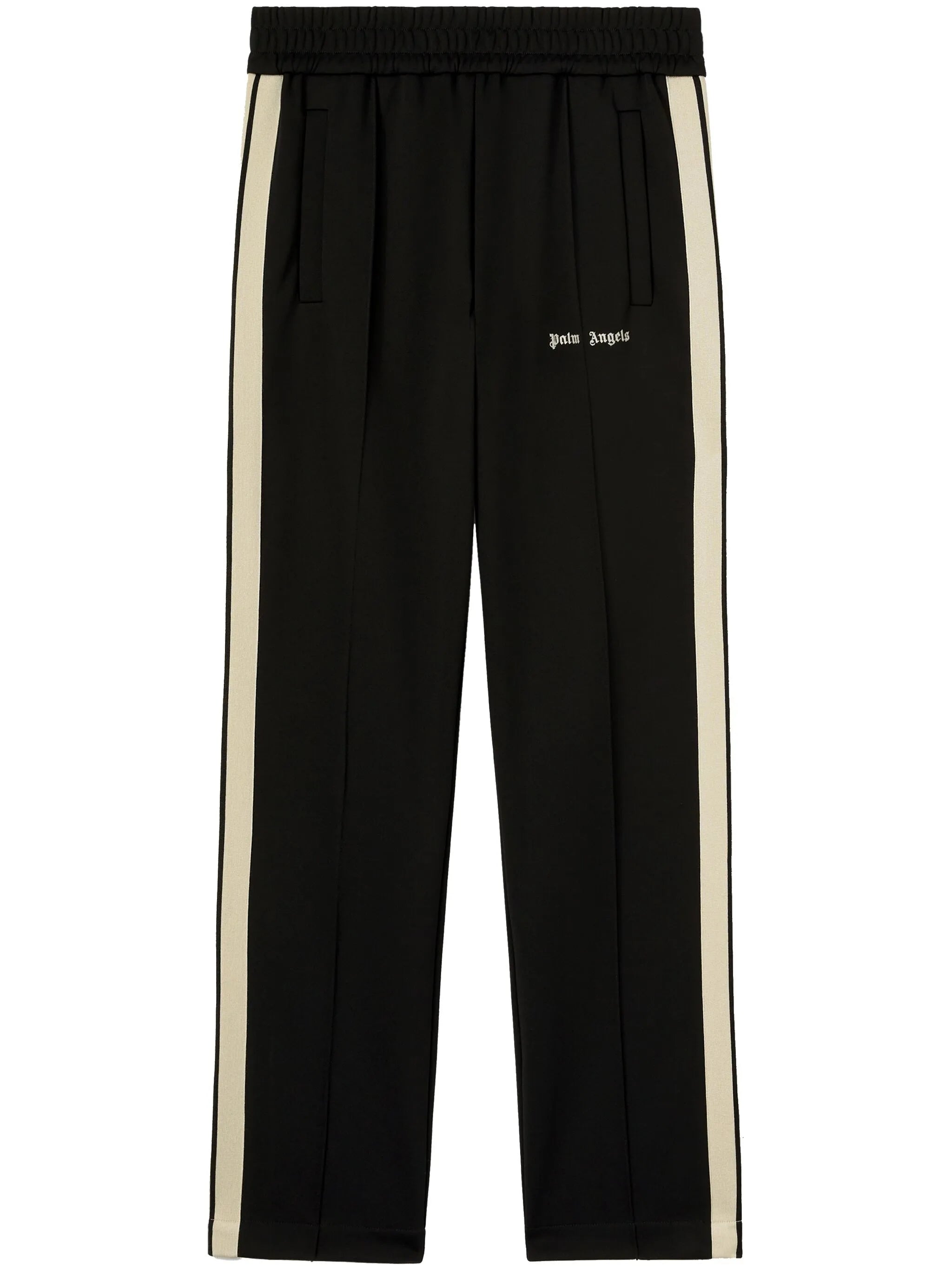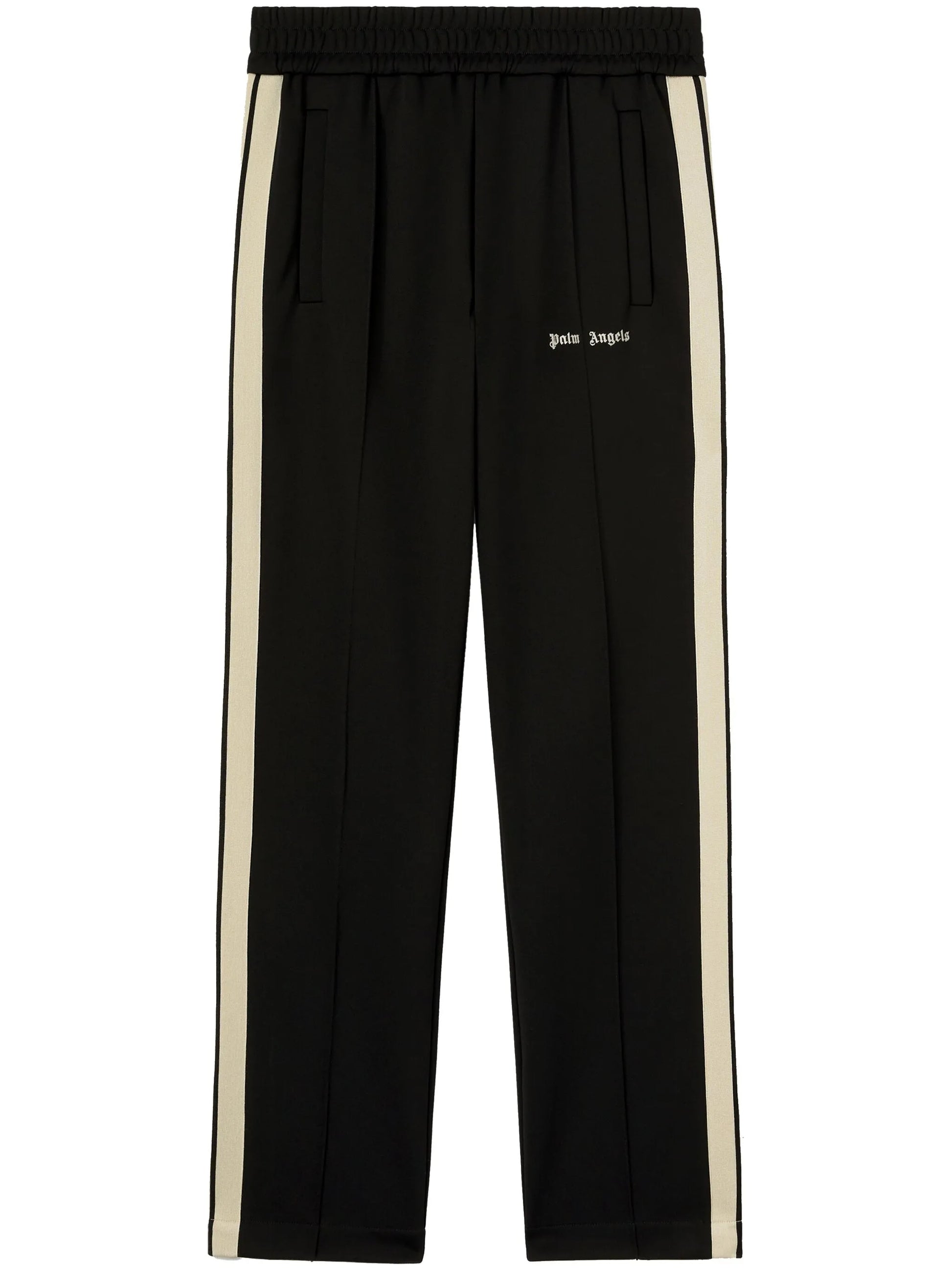 Palm Angels Track Pants — це спортивні штани з поліестеру, що поєднують комфорт і впізнавану вуличну естетику бренду. Модель виконана у прямому крої з середньою посадкою на талії та еластичним поясом для зручної фіксації. Центральні шви на штанинах додають структурності силуету, а блискавки на манжетах дозволяють регулювати ширину низу. Уздовж зовнішніх швів проходить контрастна чорно-біла трикотажна смуга, яка підкреслює спортивний характер виробу. Завершує дизайн білий логотип Palm Angels на передній частині штанини.