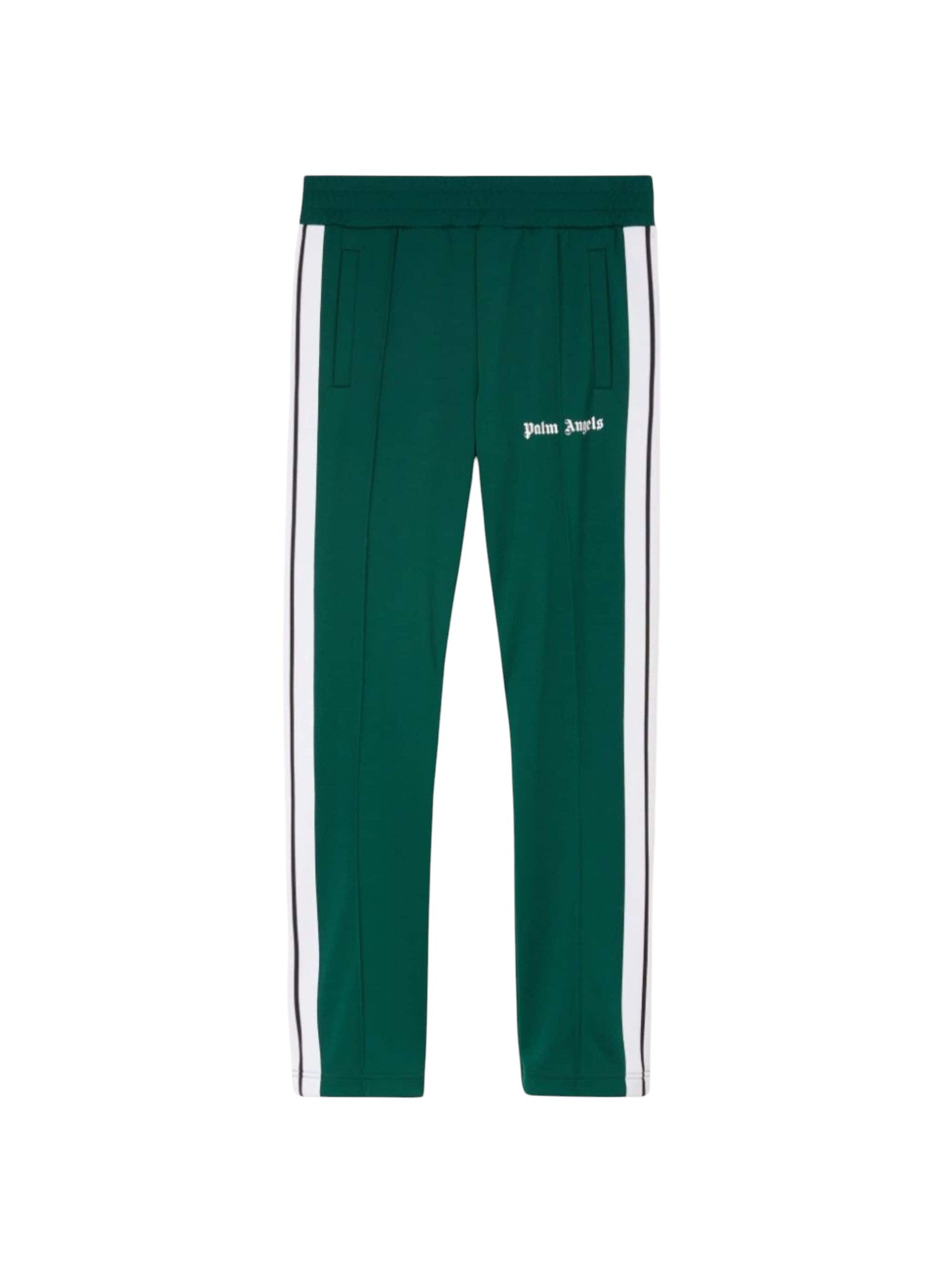 Palm Angels Track Pants — це спортивні штани з поліестеру, що поєднують комфорт і впізнавану вуличну естетику бренду. Модель виконана у прямому крої з середньою посадкою на талії та еластичним поясом для зручної фіксації. Центральні шви на штанинах додають структурності силуету, а блискавки на манжетах дозволяють регулювати ширину низу. Уздовж зовнішніх швів проходить контрастна чорно-біла трикотажна смуга, яка підкреслює спортивний характер виробу. Завершує дизайн білий логотип Palm Angels на передній частині штанини.