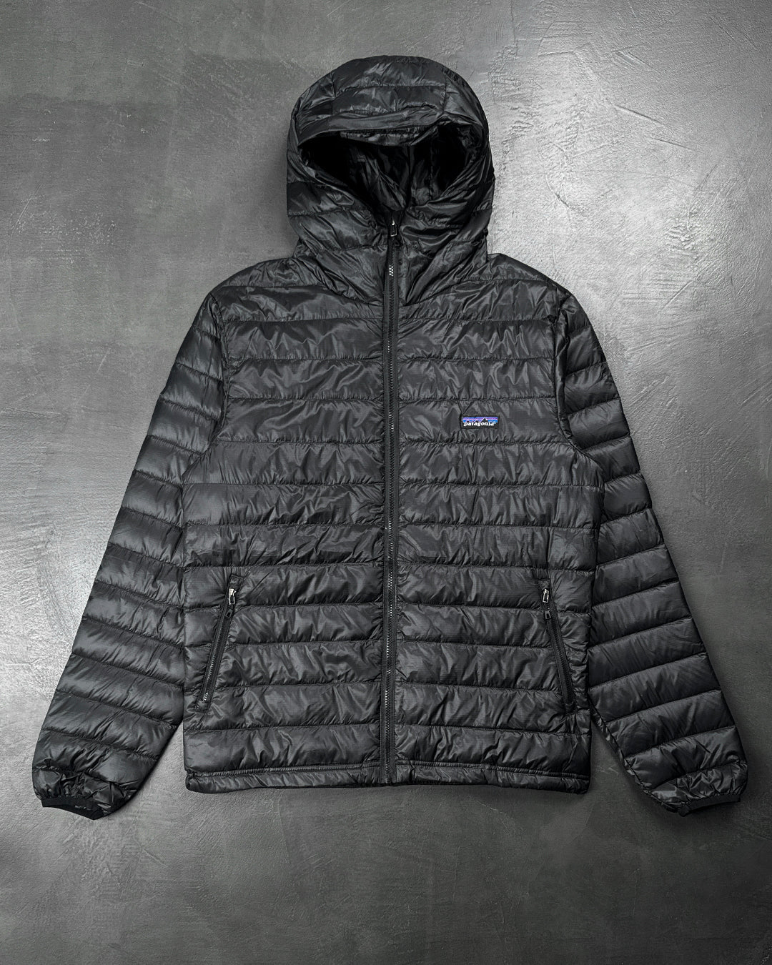 Куртка з капюшоном Patagonia Down Sweater забезпечує хорошу теплоізоляцію за допомогою пуху Traceable Down, стабілізованого стьобаною конструкцією і захищеного надлегкою, але міцною, вітро- і водонепроникною оболонковою тканиною (100% перероблений поліестер рипстоп) з DWR (довговічним водовідштовхувальним покриттям).
