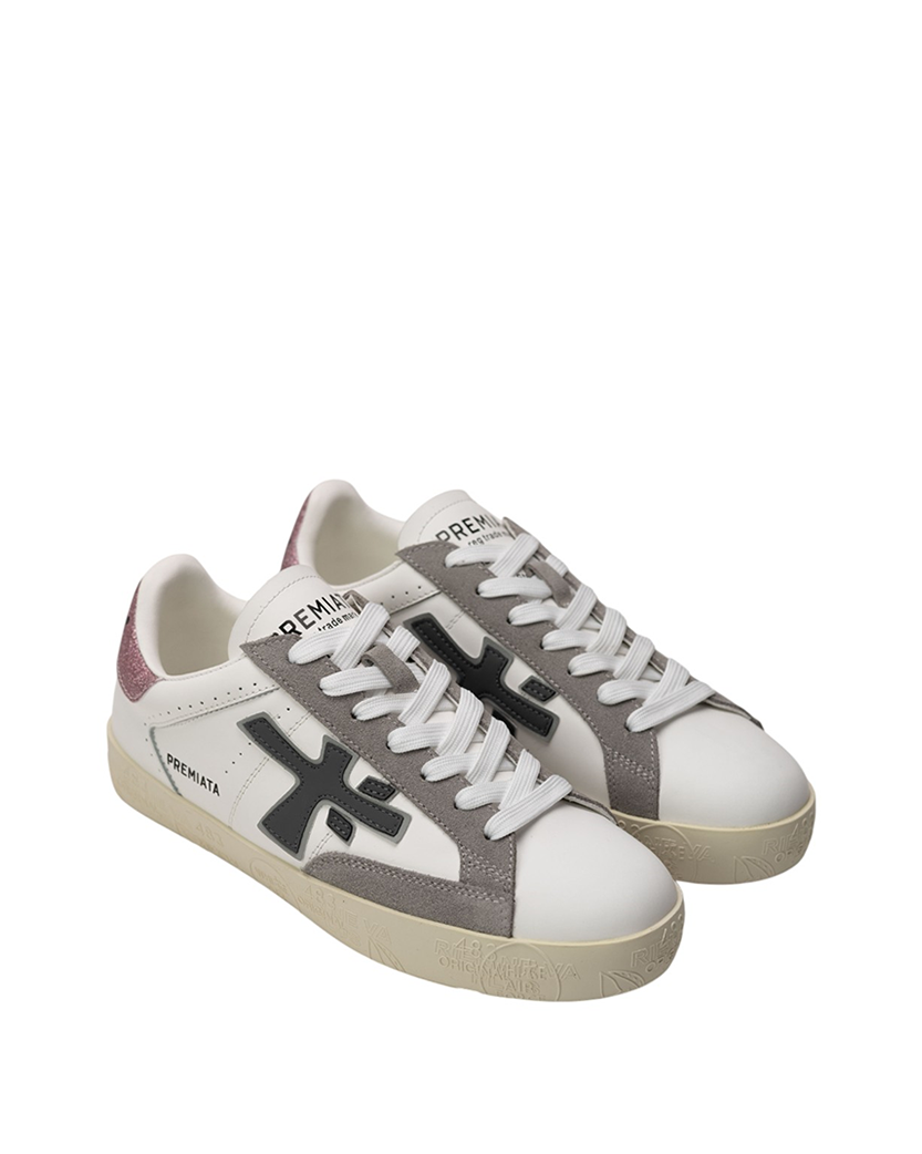 Premiata Stevend Sneakers White/Grey with Pink Tail