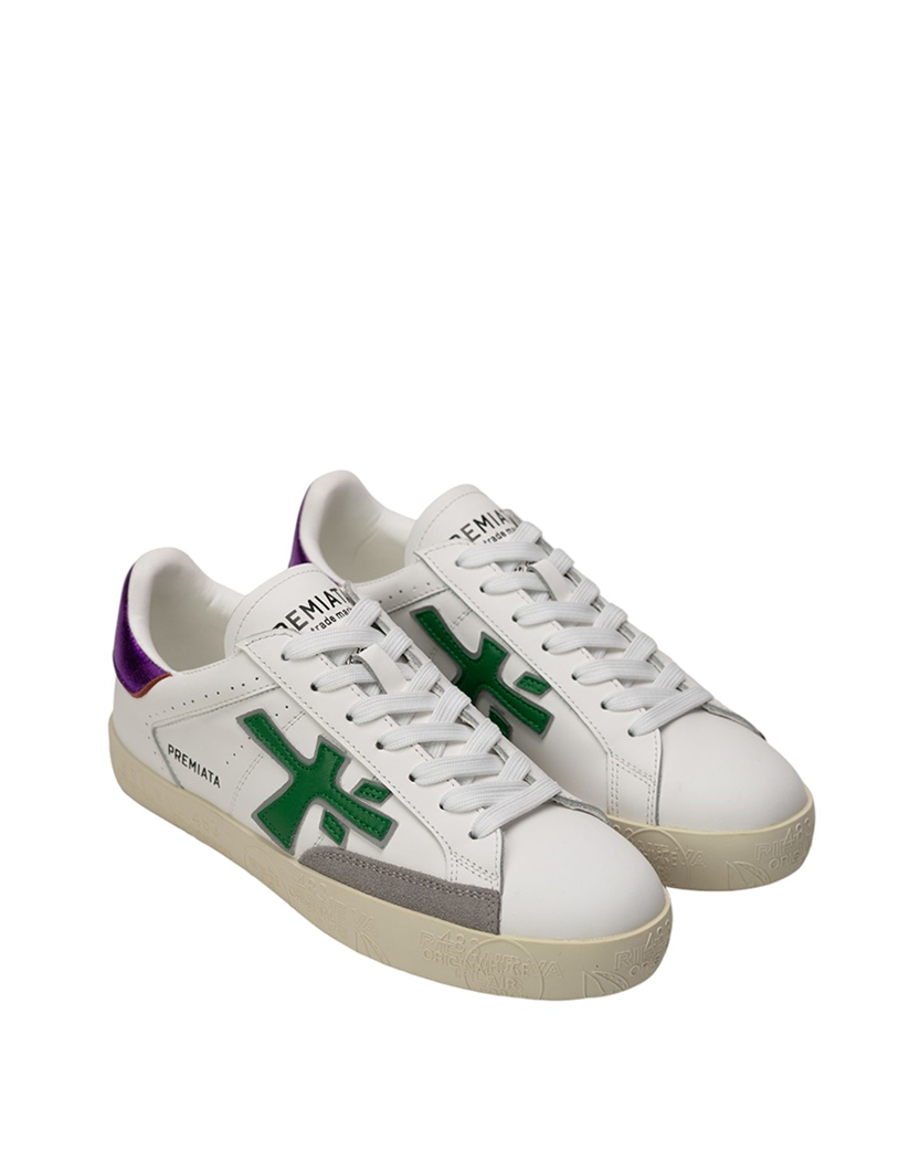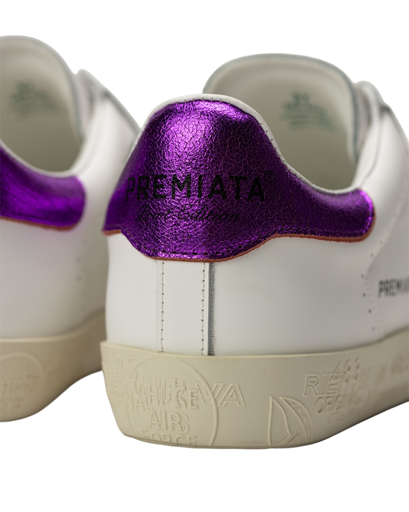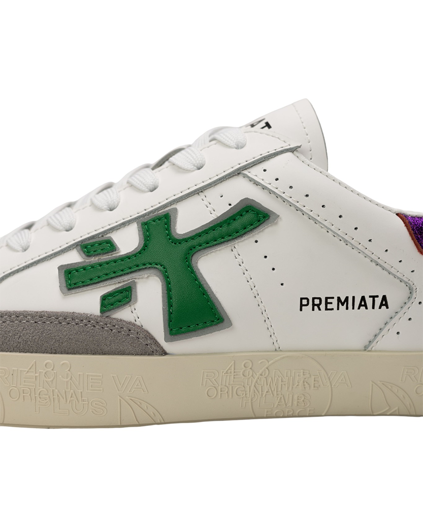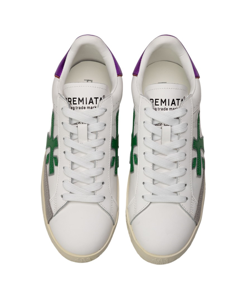 Модель Stevend від Premiata поєднує вінтажну естетику з сучасною динамікою. Контрастні вставки, перфоровані деталі та культовий логотип створюють характерний акцент, а м’яка підкладка та гумова підошва гарантують комфорт і практичність.
