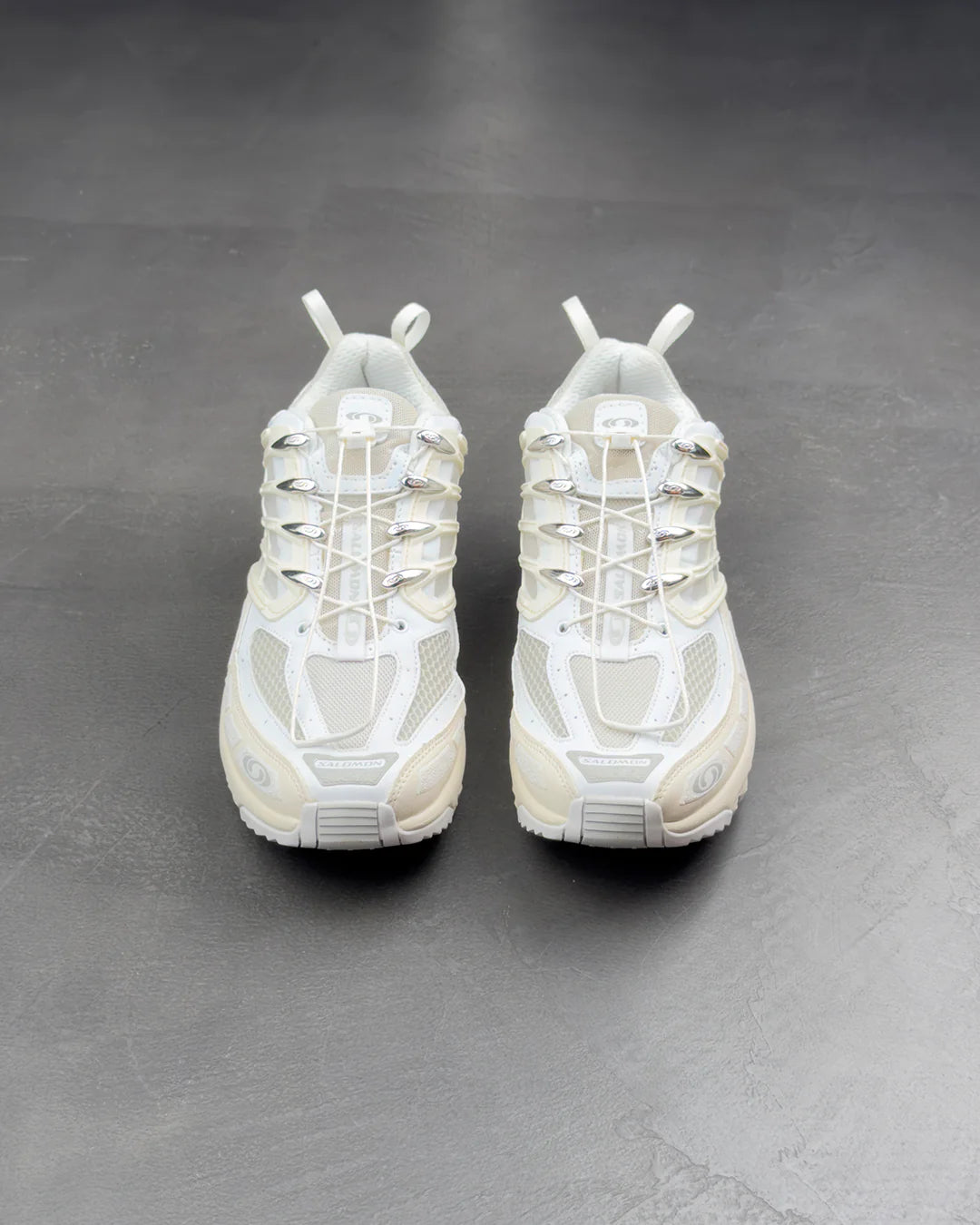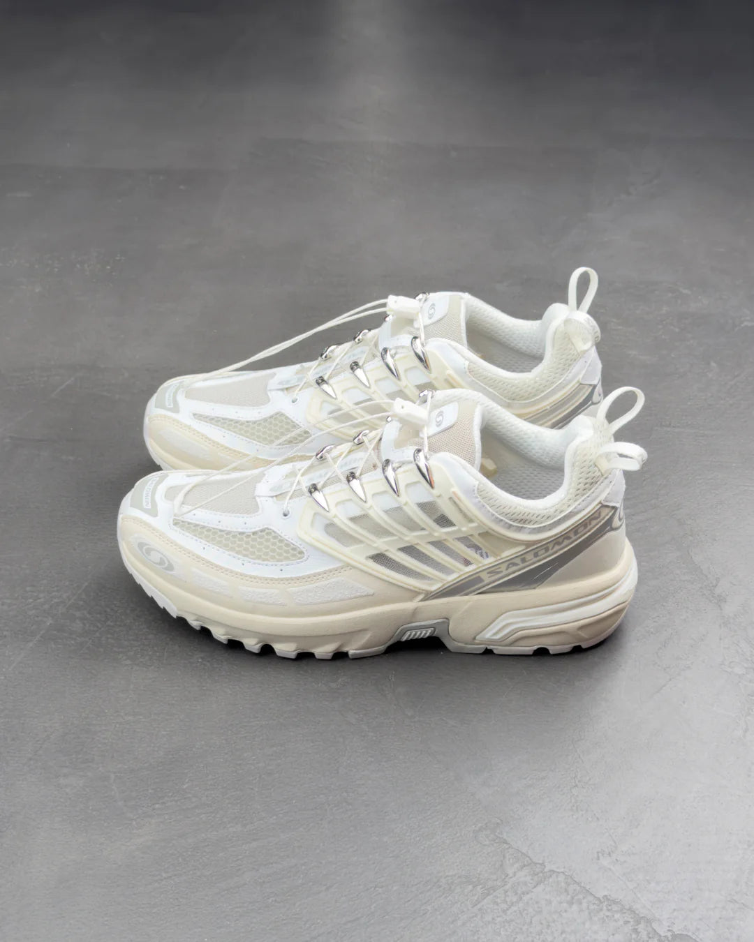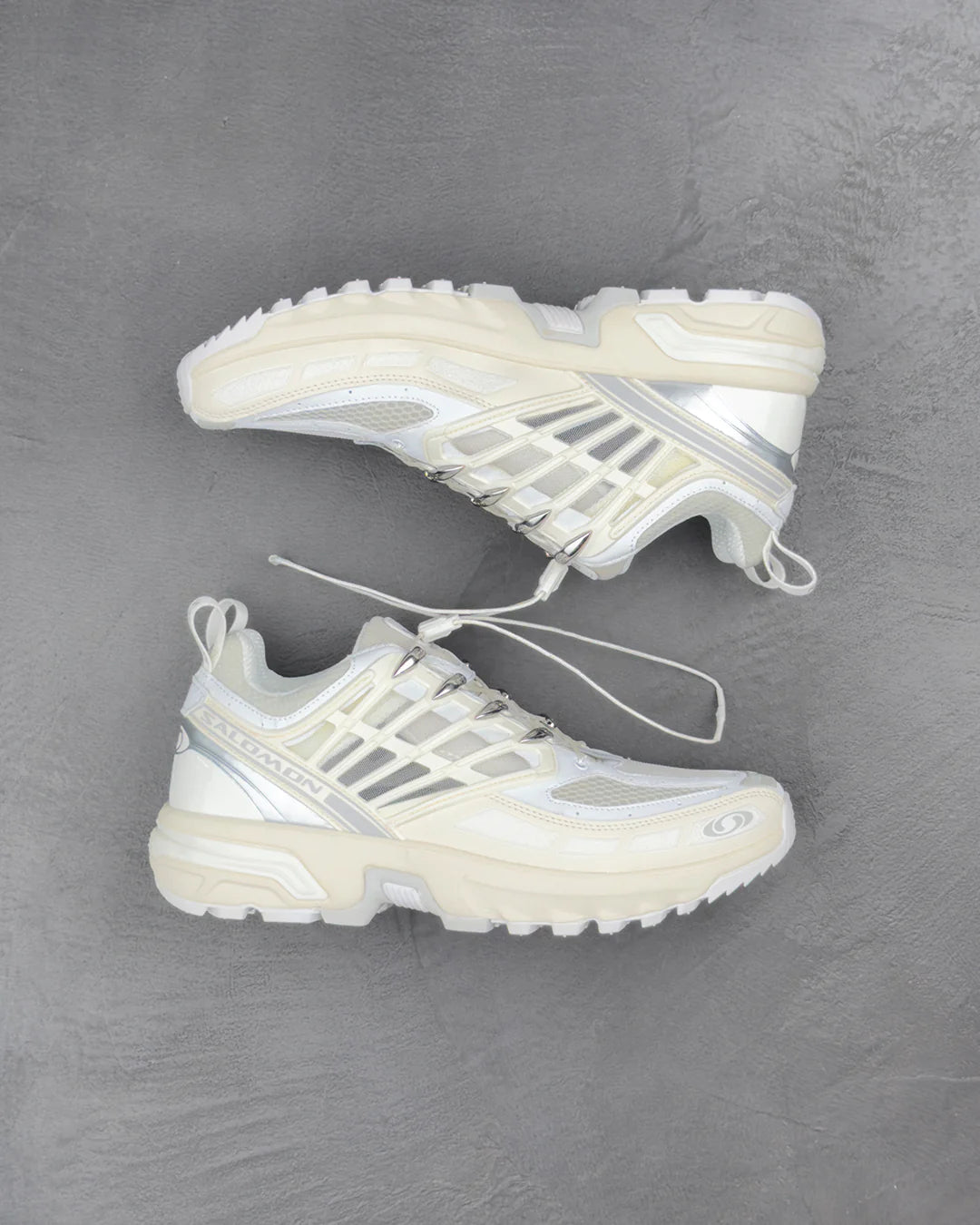 Salomon залишається вірним архівному дизайну середини 2000-х років з ACS Pro Advanced. Ця пара взуття в кольорах крижаного білого і ванільного доповнена дихаючою тривимірною сіткою у верхній частині для оптимального повітропроникнення, а потім доповнена системою Agile Chassis™, що забезпечує виняткову стійкість на будь-якому типі місцевості. В інших областях технологія SensiFit™ підтримує стопу і забезпечує щільне та комфортне прилягання, що робить їх ідеальними для тривалого дня на стежках.
