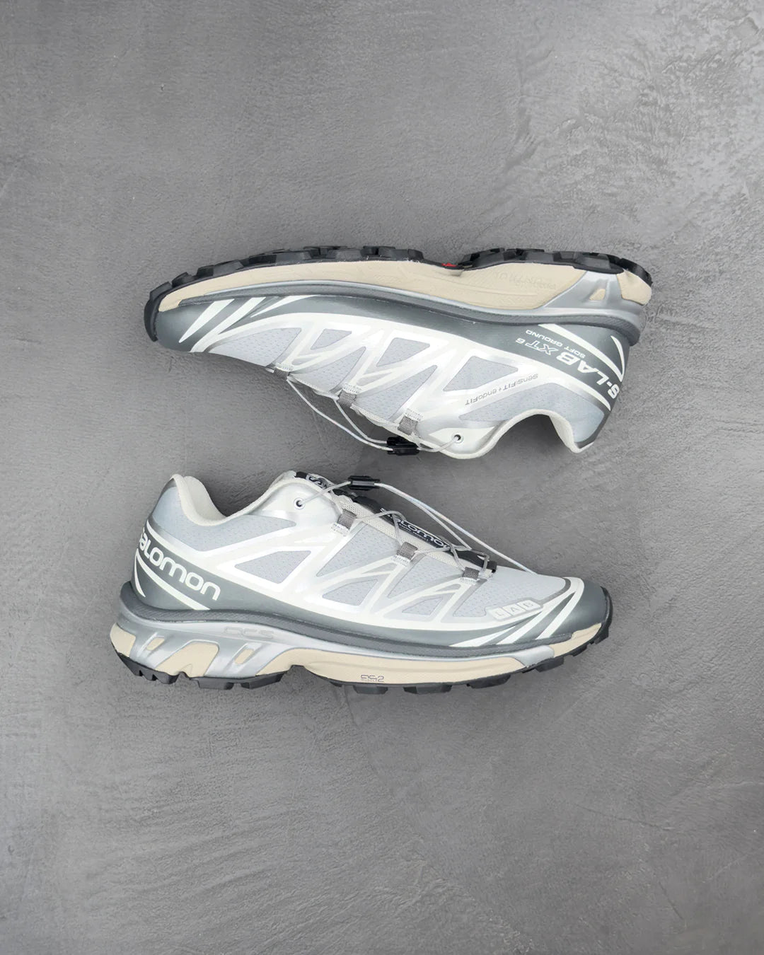 Мультибрендовий ритейлер Dover Street Market співпрацює з компанією Salomon, щоб вдихнути свій характер у силует XT-6. Універсальна сіро-чорна кольорова гама кросівок прикрашена звичним зигзагоподібним мотивом та фірмовими деталями на п'ятці та язичку.