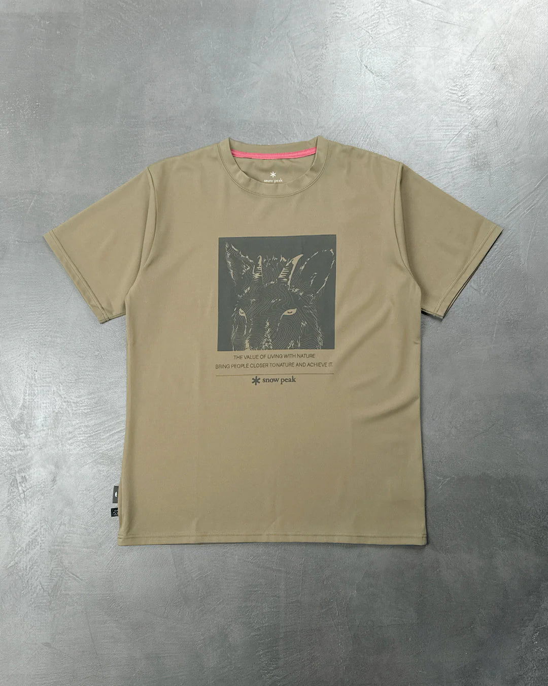Футболка з принтом від Snow Peak, виготовлена з поліестеру - це водопоглинаюча та швидковисихаюча тканина, яка підходить для активного відпочинку на природі, наприклад, риболовлі в гірських струмках.