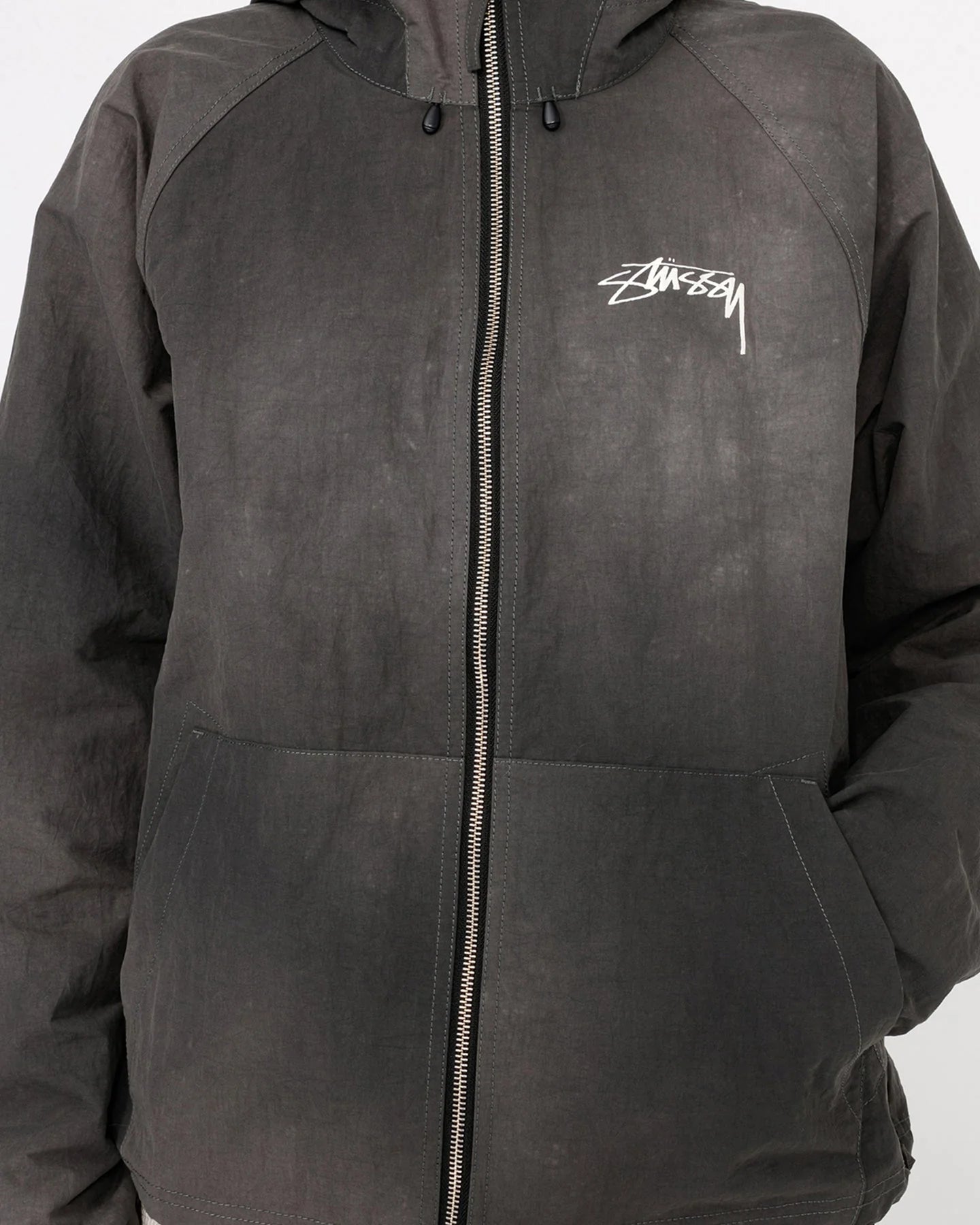 Куртка STUSSY Beach Shell Jacket вільного крою виготовлена з нейлону. Застібка на блискавку спереду, регульовані шнурки на капюшоні та подолі. Логотип Stüssy на грудях зліва та на спині надруковано гладким шрифтом.