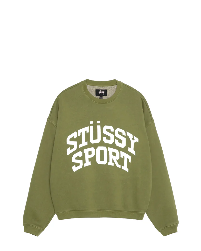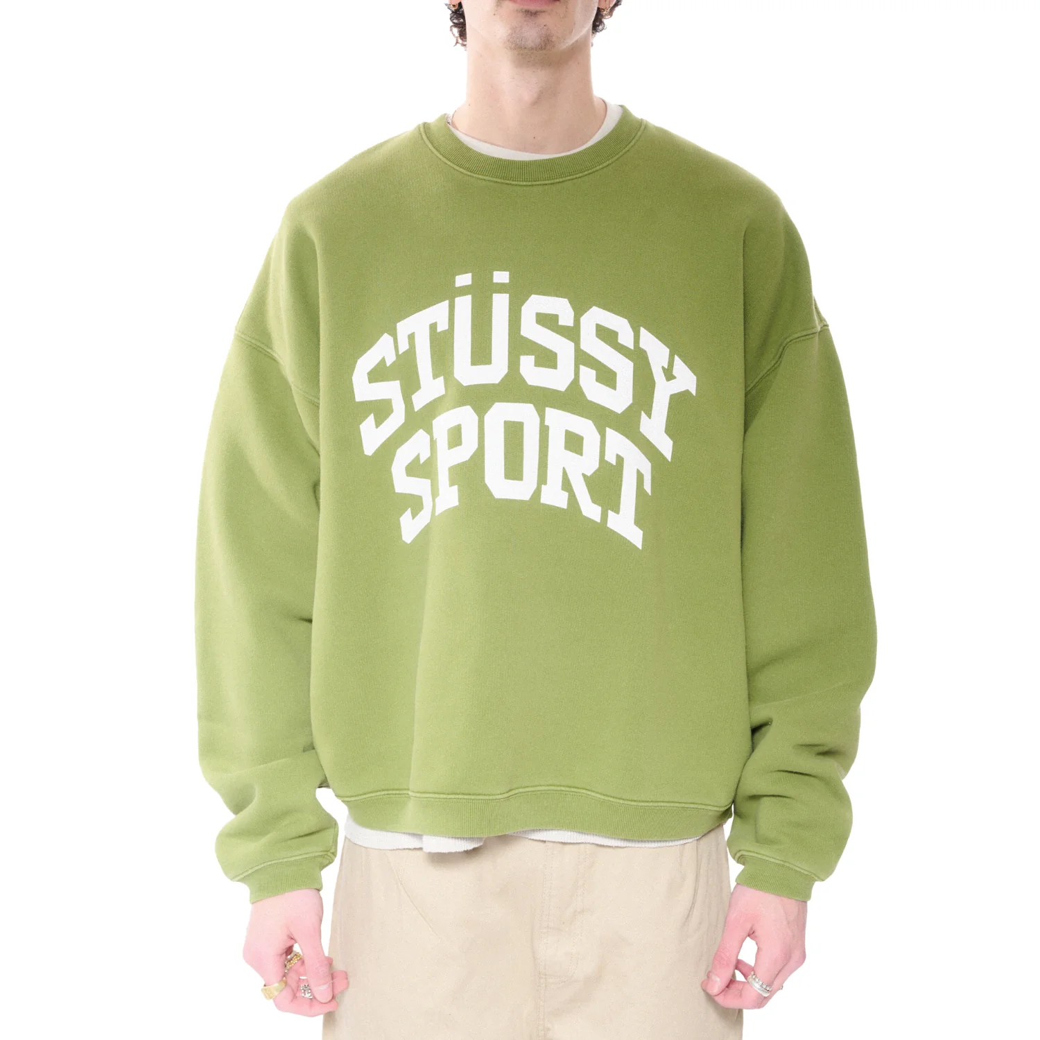 Світшот STUSSY Big Crackle Sport Crew виконаний із щільної бавовняної суміші вагою 15,8 унцій. Модель має широкий крій, круглу ребристу горловину, а також манжети й поділ із ребристої тканини. Спереду розташований логотип Stüssy Sport із ефектом потріскування.