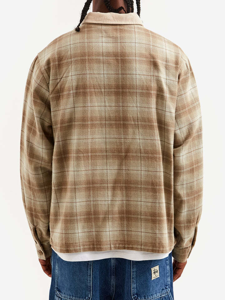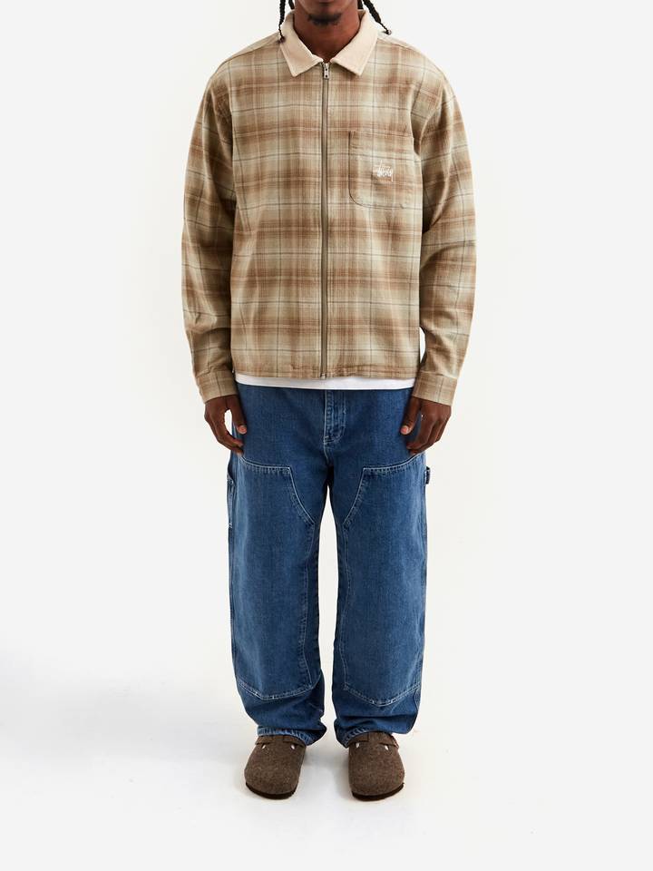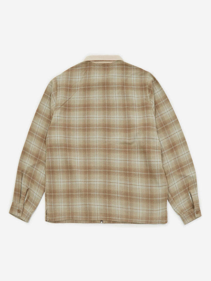STUSSY Frank Plaid Zip Shirt — унісекс-сорочка прямого крою з м’якої матової пряжі в картатому візерунку, доповнена вельветовим коміром. Модель має застібку-блискавку, накладну нагрудну кишеню з вишивкою логотипу Stüssy, бічні вентиляційні отвори та плаский поділ. Практичний варіант для багатошарових образів у прохолодну погоду.