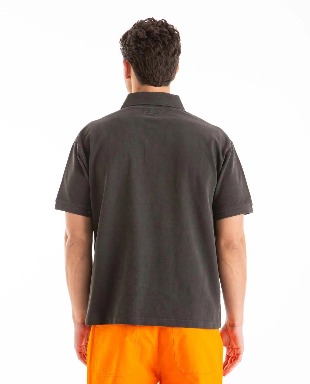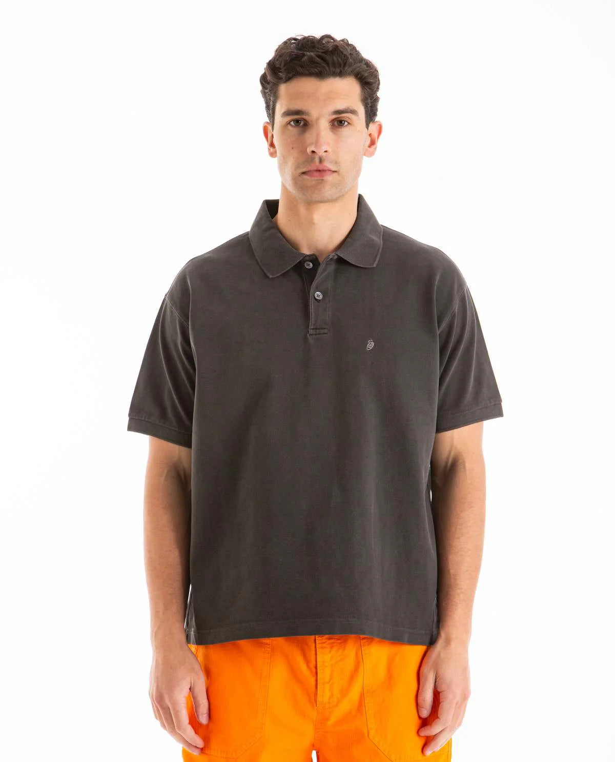 Пігментоване піке-поло чорного кольору від Stussy. Поло класичного крою, виготовлене з бавовни вагою 8,3 унції. Застібка на ґудзиках кольору димчастого перламутру та вишивка Stussy у вигляді закрученої літери S на грудях.