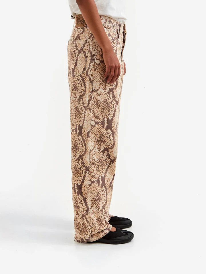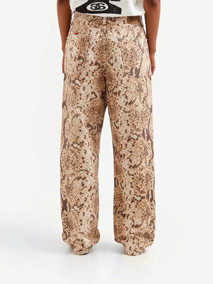 Культова модель Big Ol' Jean від Stussy з надшироким кроєм отримала сезонне оновлення для FA23 у цьому ефектному повсюдному пітоновому принті.