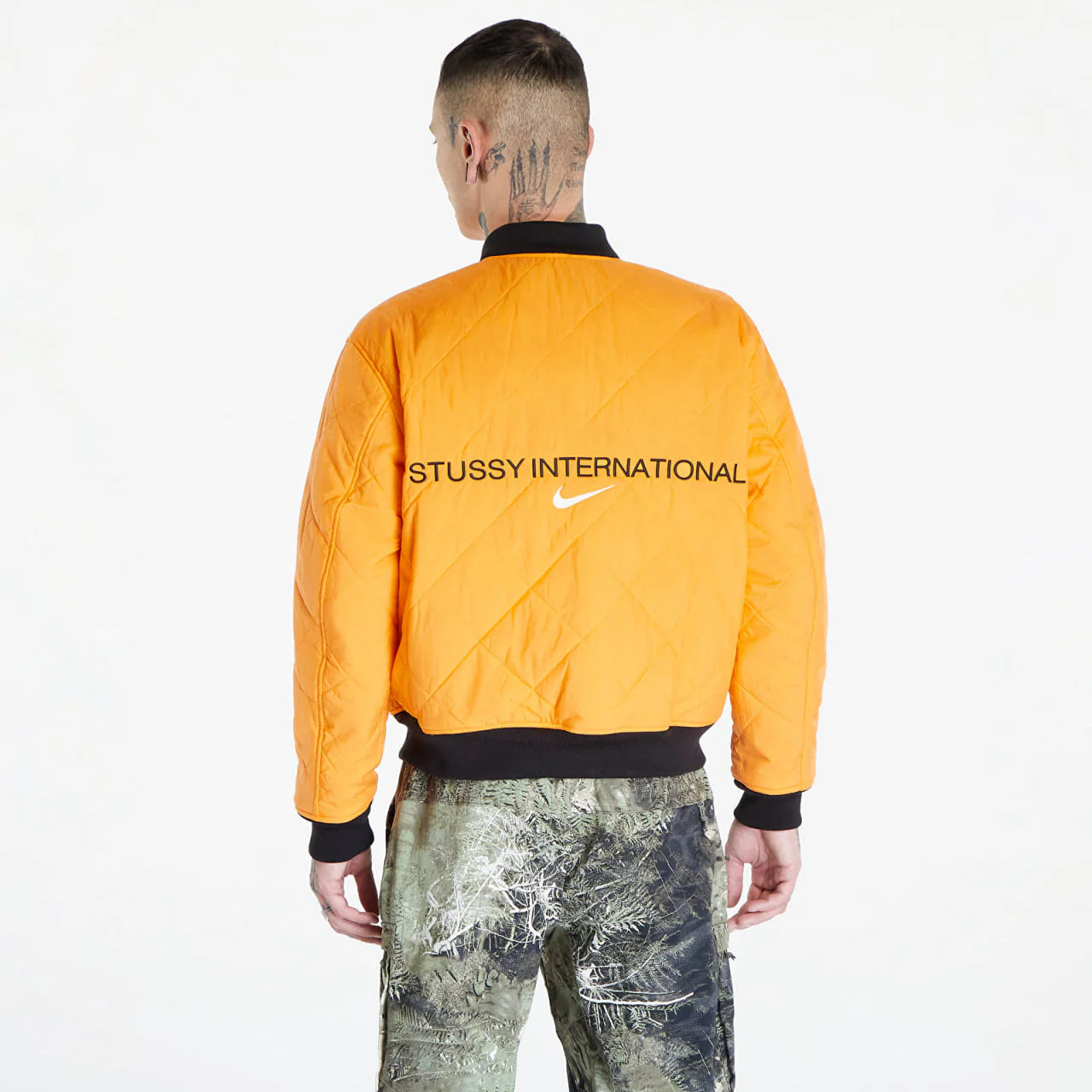 Nike і Stüssy, які перебувають на непереможному ходу, пропонують реверсивну версію куртки. Чисті лінії та ребристі манжети, поділ та комір надають їй вінтажного вигляду і допомагають зберігати тепло. Ця куртка двостороння – одна сторона має сміливий вигляд з вишитими логотипами та написами, а інша – мінімалістична сторона з простим вишитим спільним брендингом на спині.